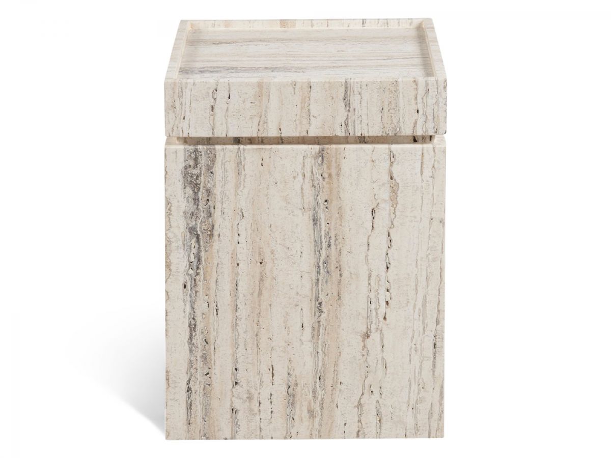 The Daxton Accent Table, featuring a square White Travertine body, is a study in elegance and subtlety. Its design is enhanced by small, intricate details that elevate the piece from straightforward to sophisticated, offering a blend of simplicity and refined charm that enhances any space with its quiet luxury.