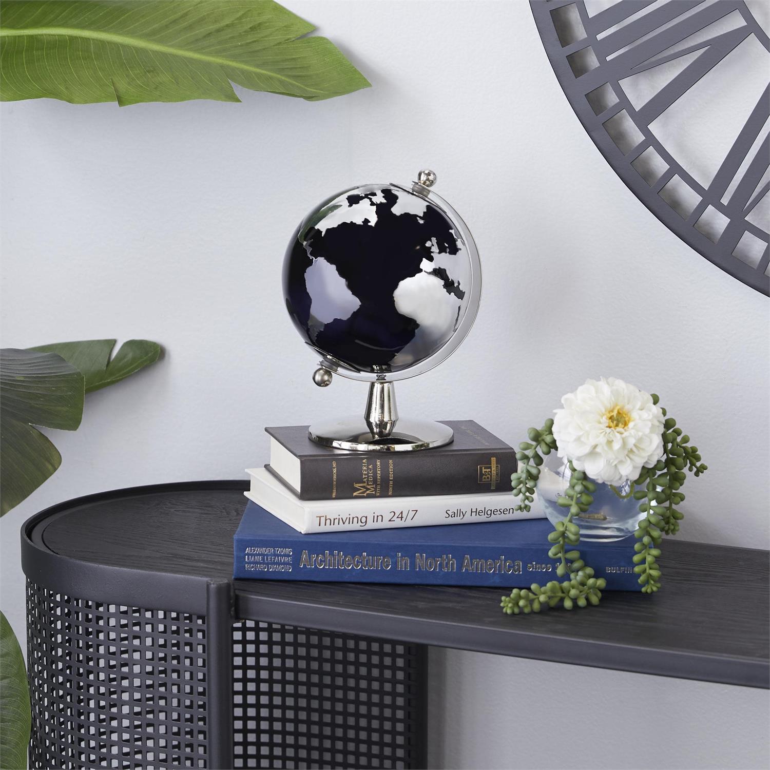 Made with a contemporary design, this Decorative Globe features a black and silver finish and a sleek style.