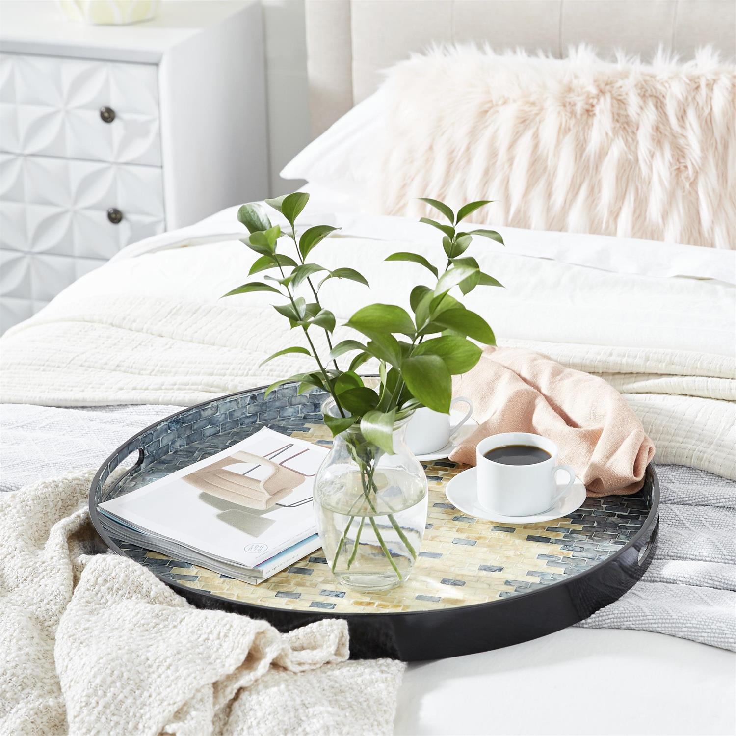 The coastal aesthetic of the Decorative Tray Set creates a blissful serenity.