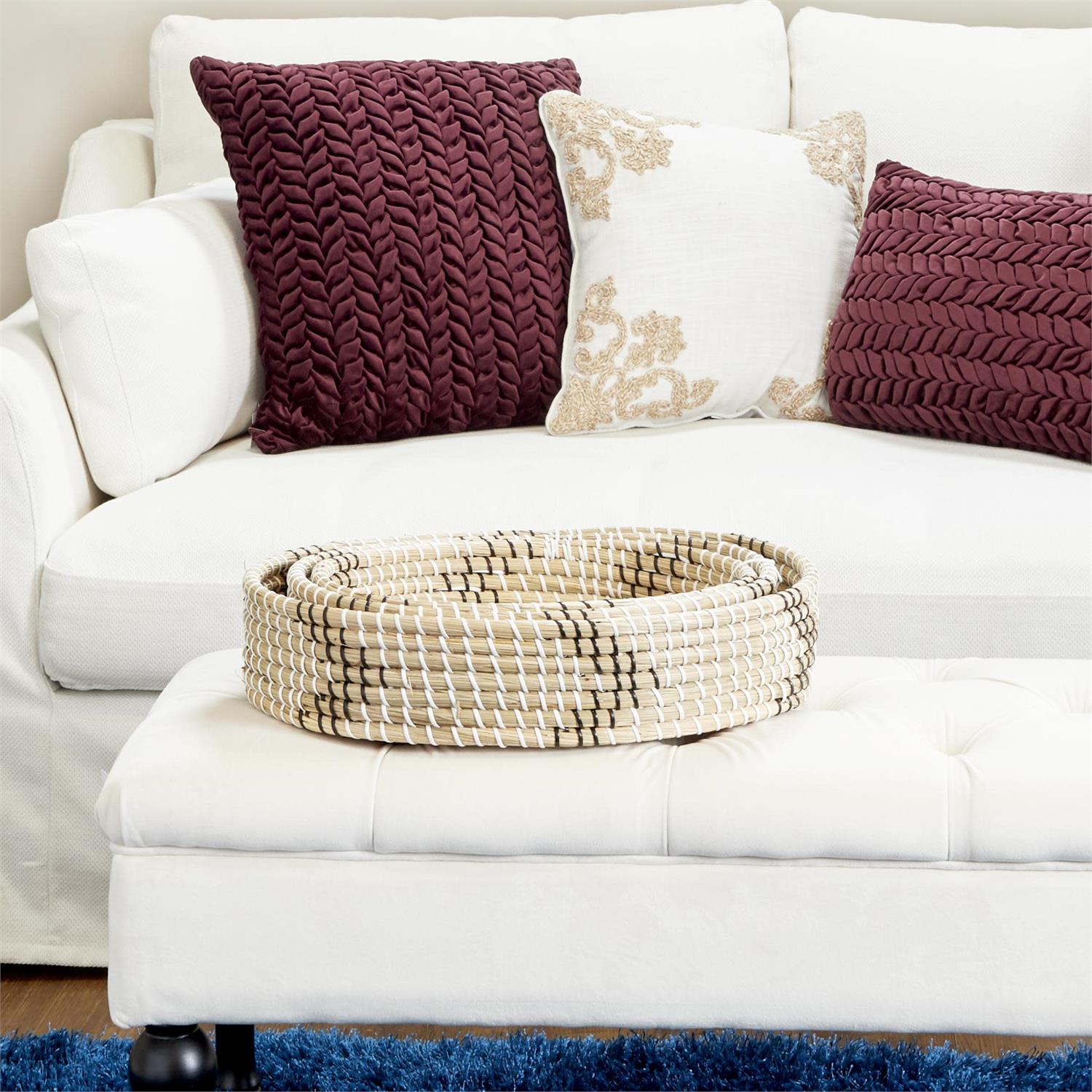 • Seagrass fiber is dried and intricately weaved to form a remarkable coastal basket tray design