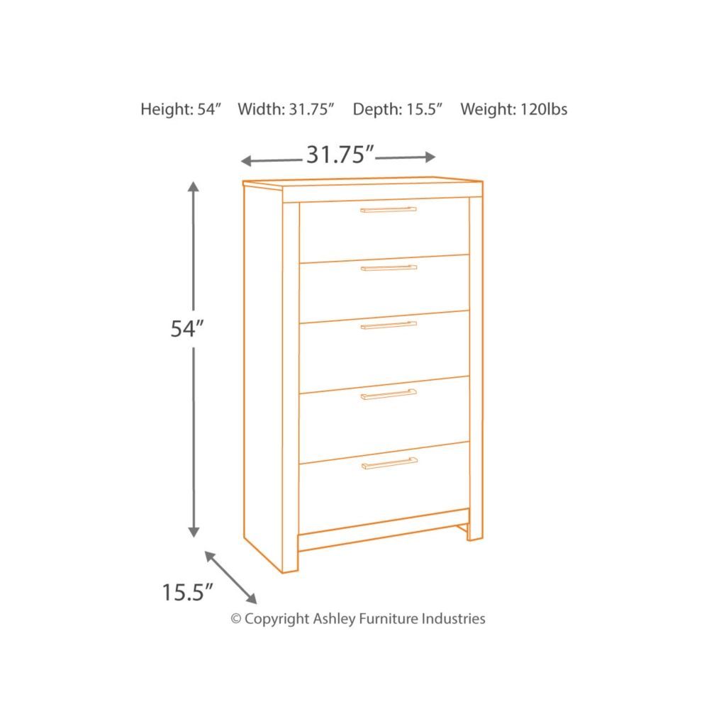 A modern design, the Derekson chest of drawers has a rustic finish with a raw wood look.