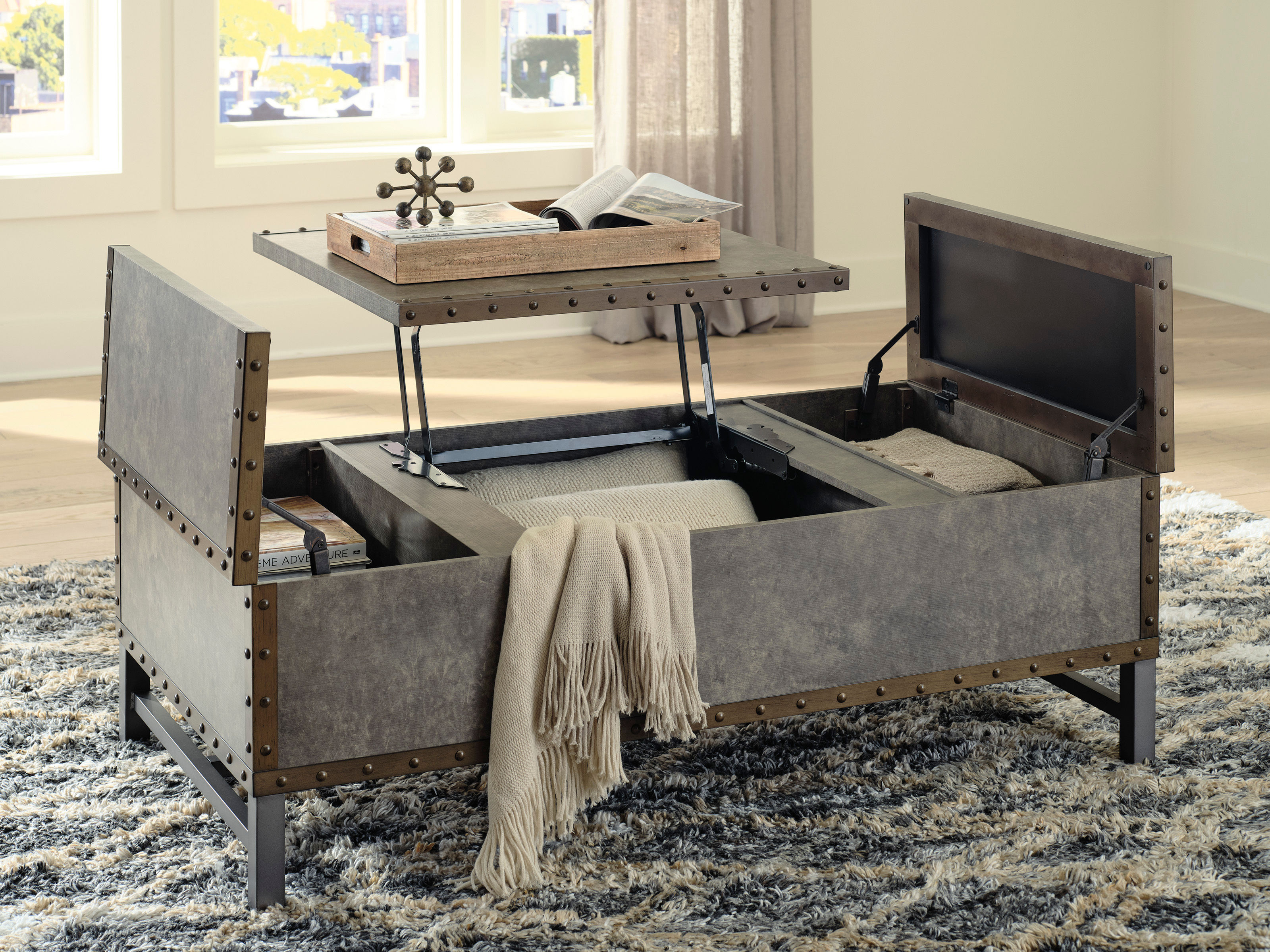 Vintage industrial design meets modern functionality, the Derrylin lift-top coffee table has spacious storage.
