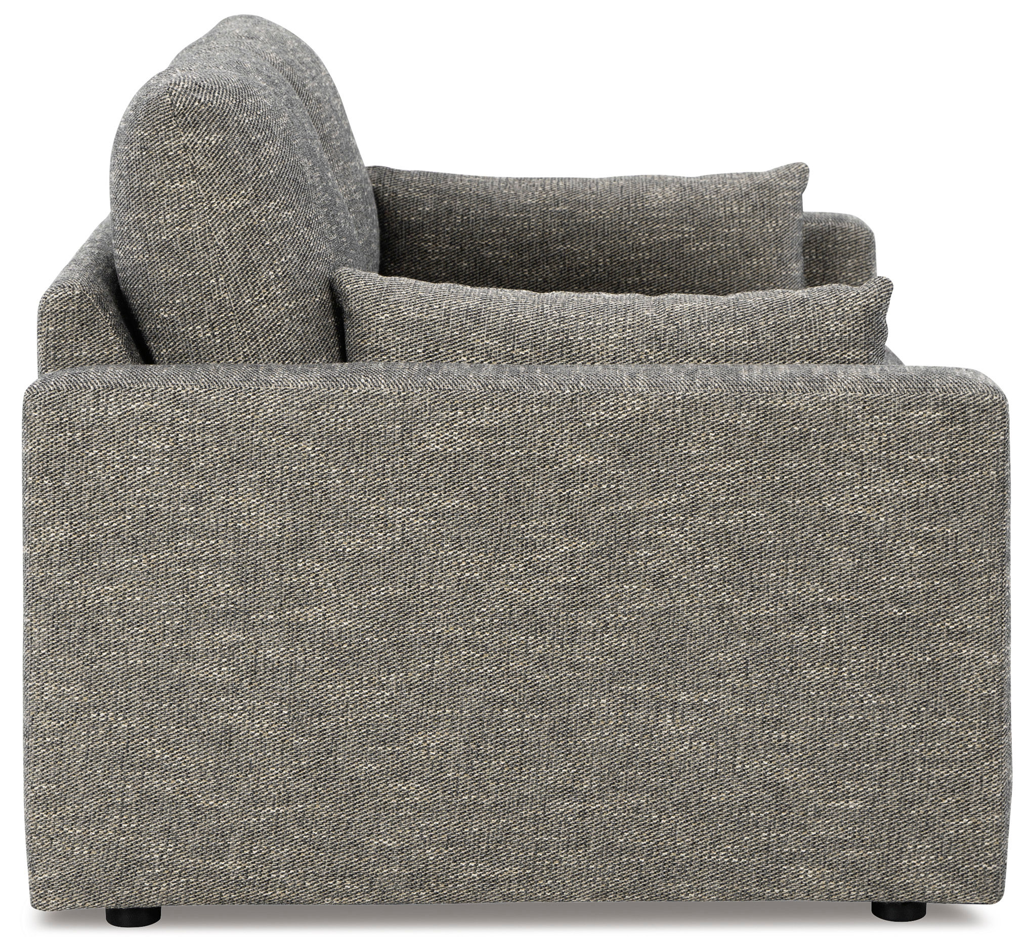 On the days when rest and relaxation seem out of reach, this loveseat provides a positively plush seating experience. Its feather-fiber blend cushions invite you to float away in cloud-like comfort. Striking granite-hued upholstery and a streamlined frame grant this cozy piece a look well-suited to contemporary spaces.