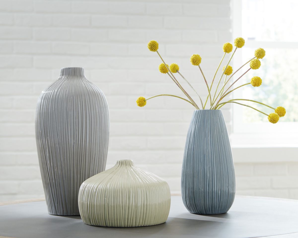 The Eiderman vase set of three features endless styling possibilities with its contemporary design.