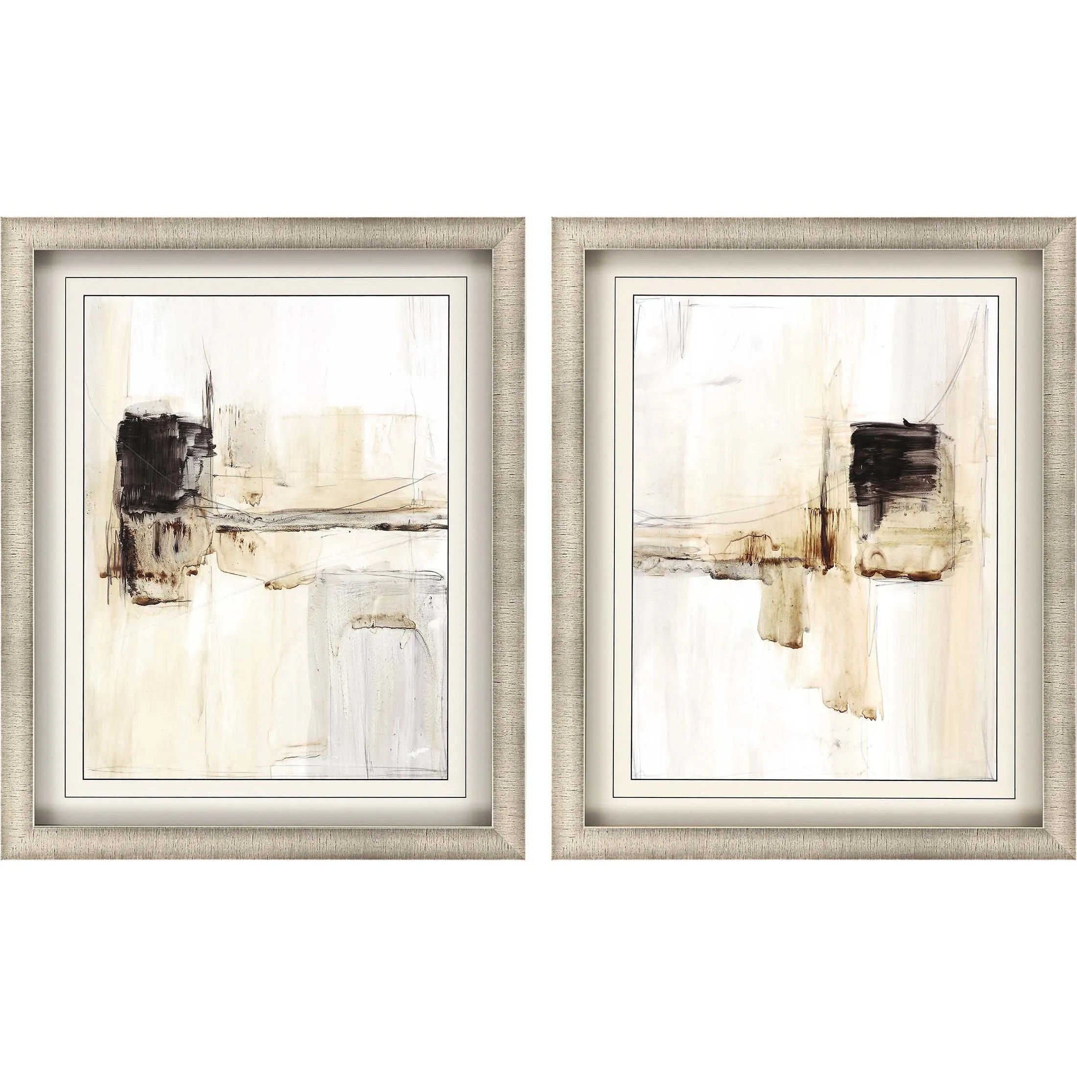 The Electrical Grid Wall Art Set of two features an abstract design with tones of black, beige, white and gray. This wall art set has a gray frame surrounding it, adding to the neutral color scheme and contemporary style. Made for vertical orientation only.