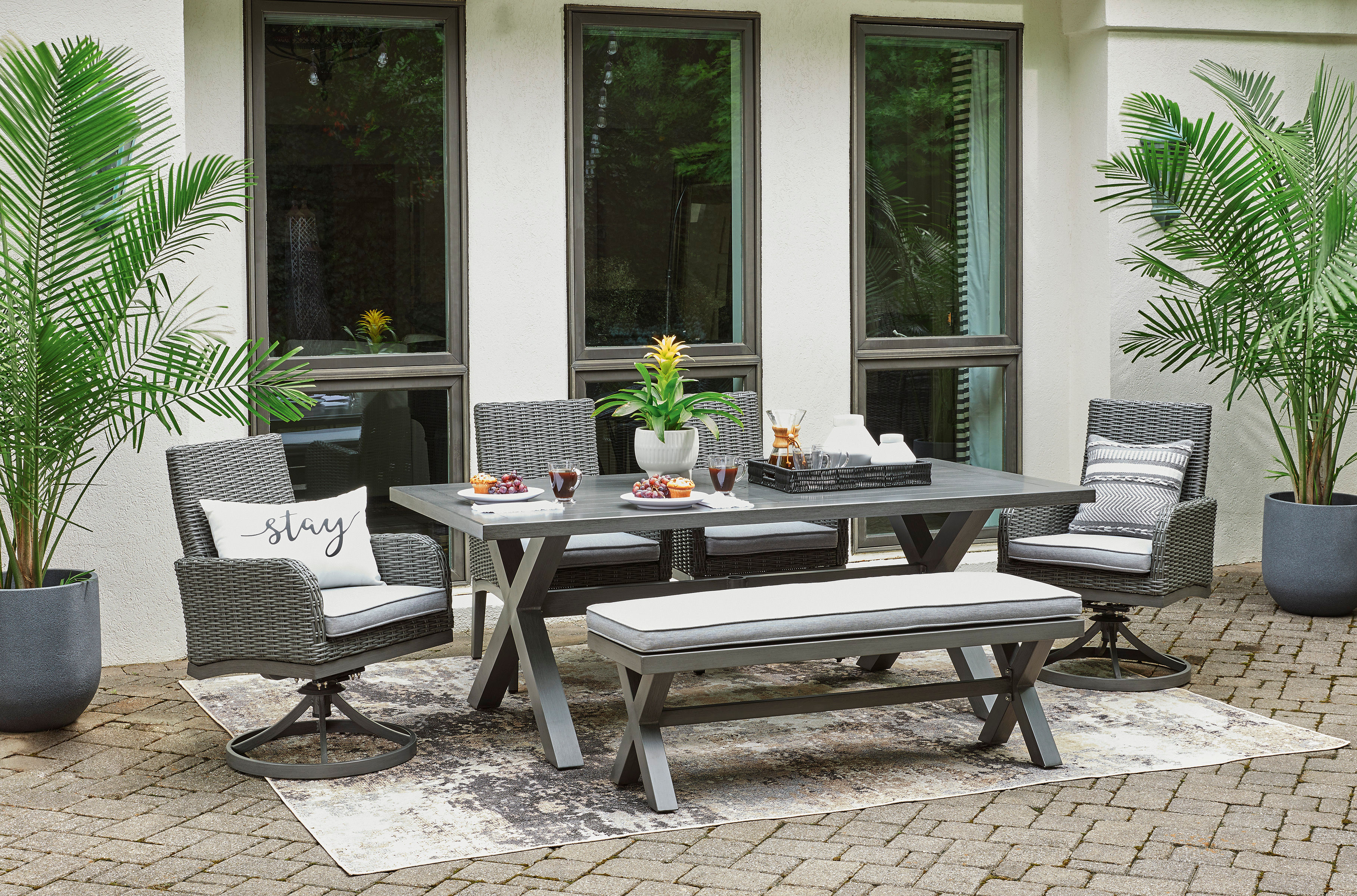 Add a distinguished touch of gray to your outdoor living space with the Elite Park bench. It's made with an aluminum frame with a wood-look finish for a relaxed feel that provides seasons of enjoyment. Rest assured, the thick seat cushion is wrapped in Nuvella® high-performance fabric that’s fade-resistant, stain-resistant and a breeze to clean.