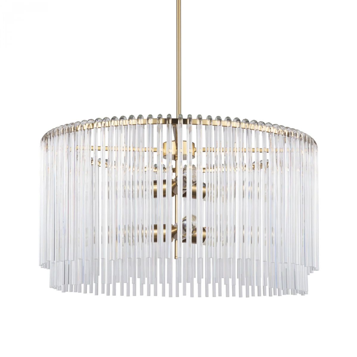 The Elsa 6-light gold & glass chandelier features a electroplated antique brass chasis and frosted hanging glass rods that will be sure to add a glamorous touch to your home.