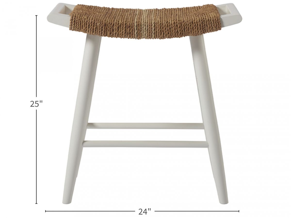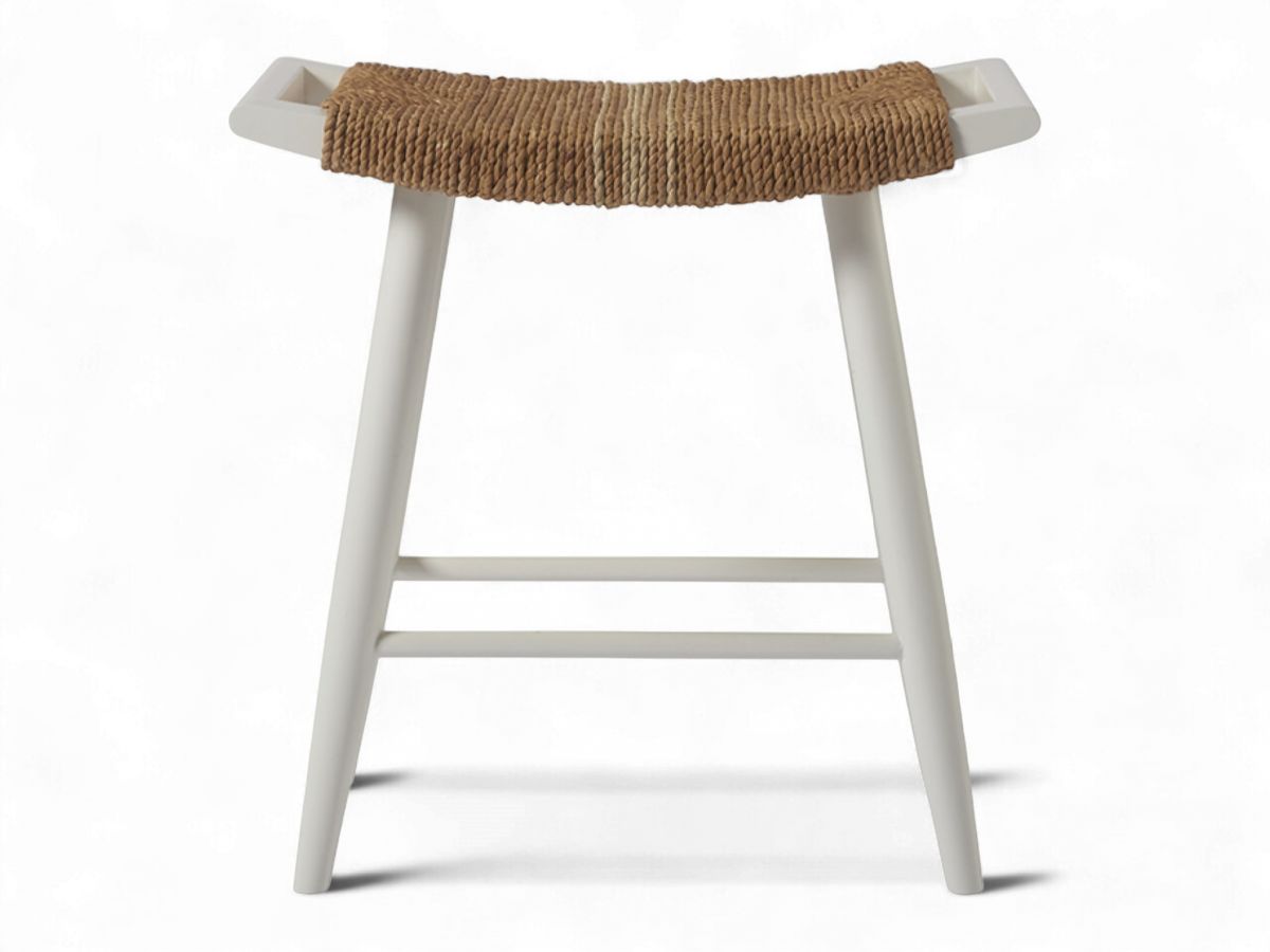 The Escape Counter Stool is designed with a white body and a neatly wrapped woven abaca seat, creating a breezy seating accent full of stylish appeal and function.