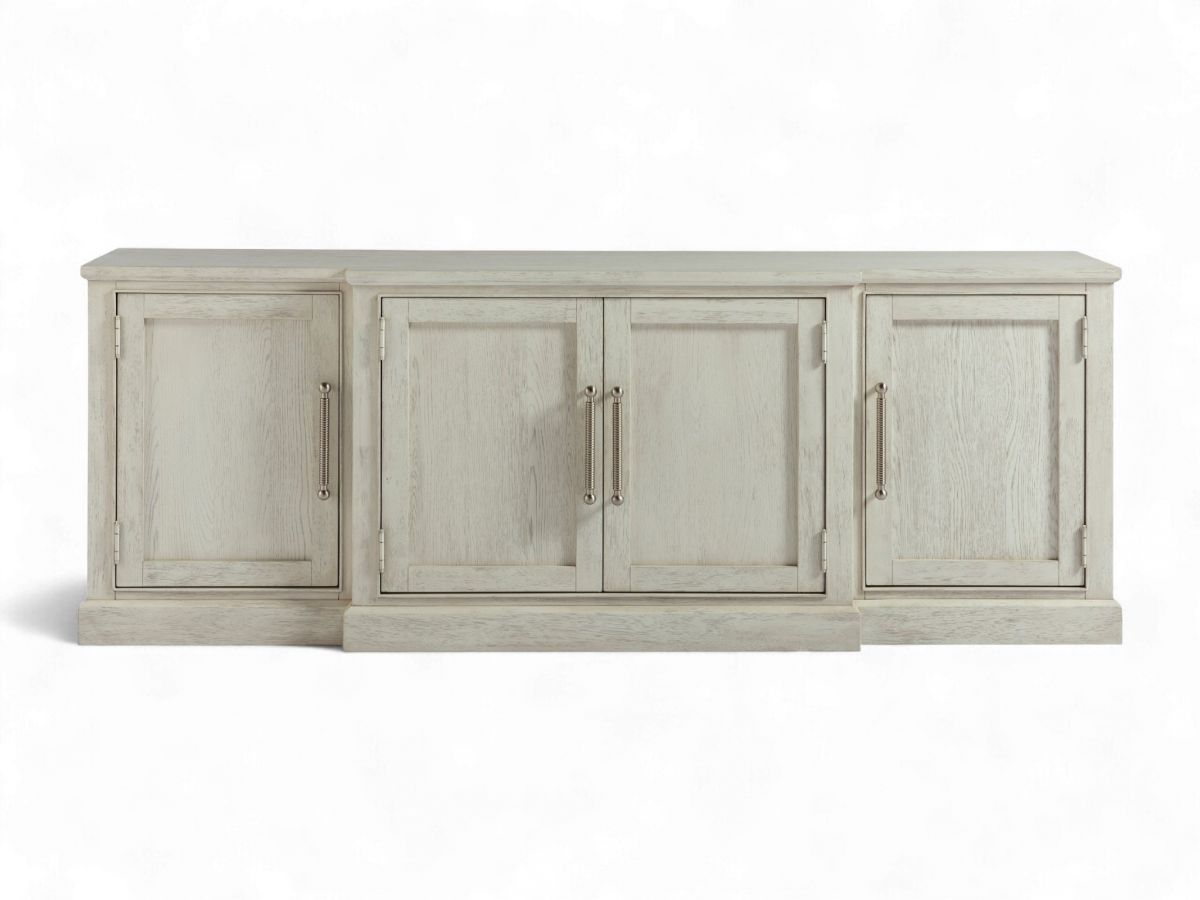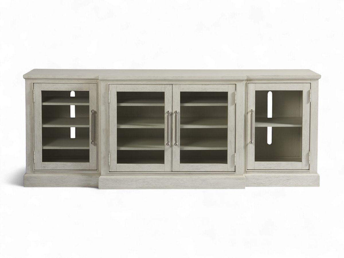 Outfitted with maximum shelving space within a gorgeously light silhouette, the Escape Entertainment Console marries the beauty of casual elegance with functionality, crafted with convenient adjustable shelving and wire management partitions. Comes with options of wood and glass inset panels.