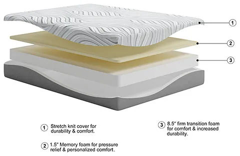 When it comes to your comfort, discover this 10-inch mattress. Its thick layer of memory foam conforms to your body, delivering amazing support, pressure relief and comfort. The memory foam layer is paired with a super-thick layer of firm support foam, which helps reduce motion transfer so you and your partner can enjoy an undisturbed sleep. This mattress arrives in a box for easy setup. Foundation/box spring available, sold separately.