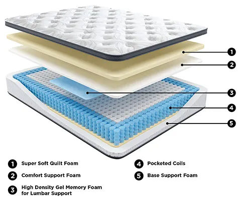 Experience cooling gel memory foam and body-contouring pocketed coils with this hybrid mattress.