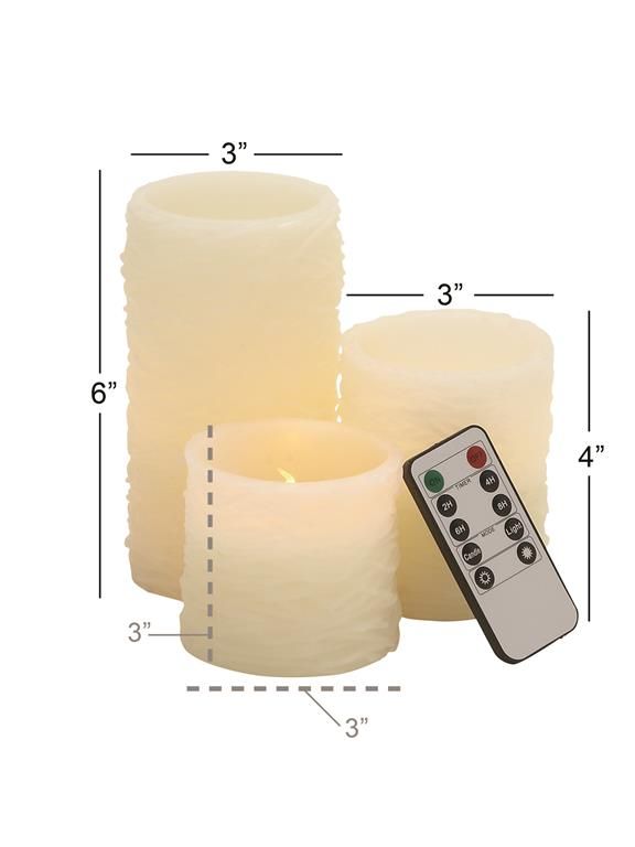 • Traditional set of 3 flameless candles home decor is molded from wax with precision, integrating battery packs and LED lights within