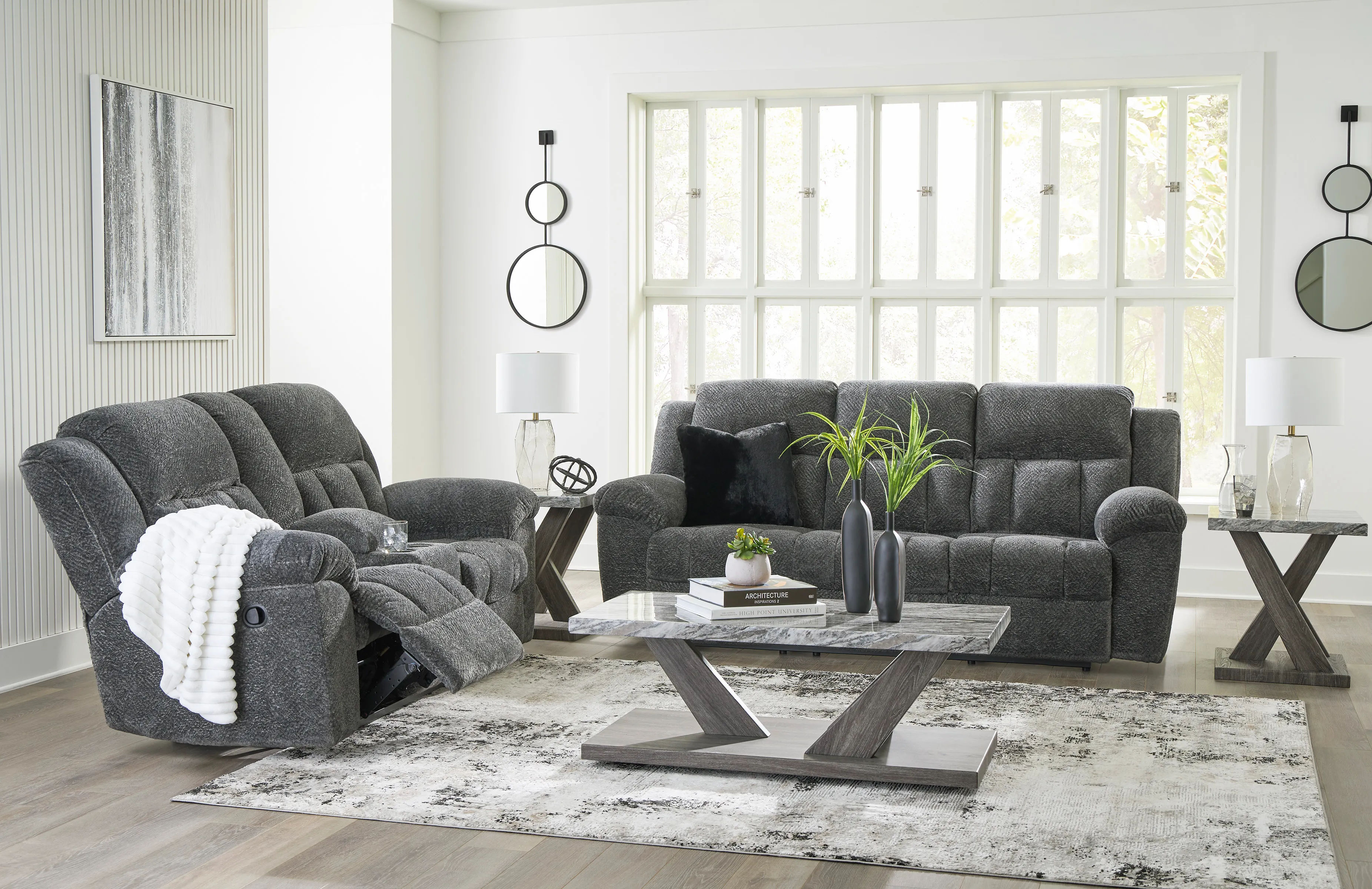 Add a neutral touch to your living room with the Frohn reclining loveseat.