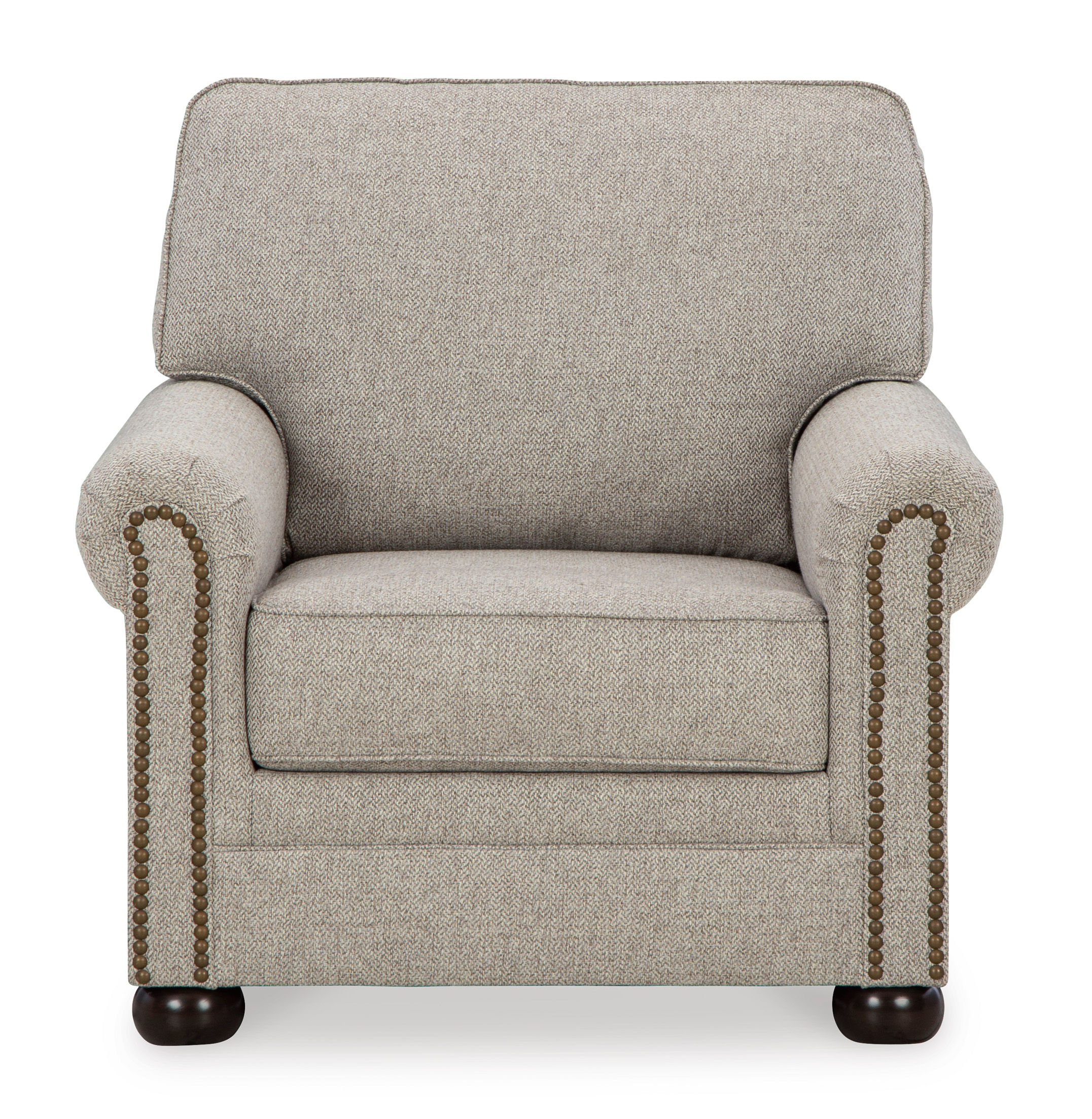 Inspired by the past but rooted firmly in the present, the Gaelon chair complements your transitional seating area. Its versatile upholstery is delightfully detailed for a subtle herringbone effect. Designer touches like decorative nailhead trim and bun legs add traditional character. With this chair’s reliable style and comfort, all you need to do is sit back and relax.