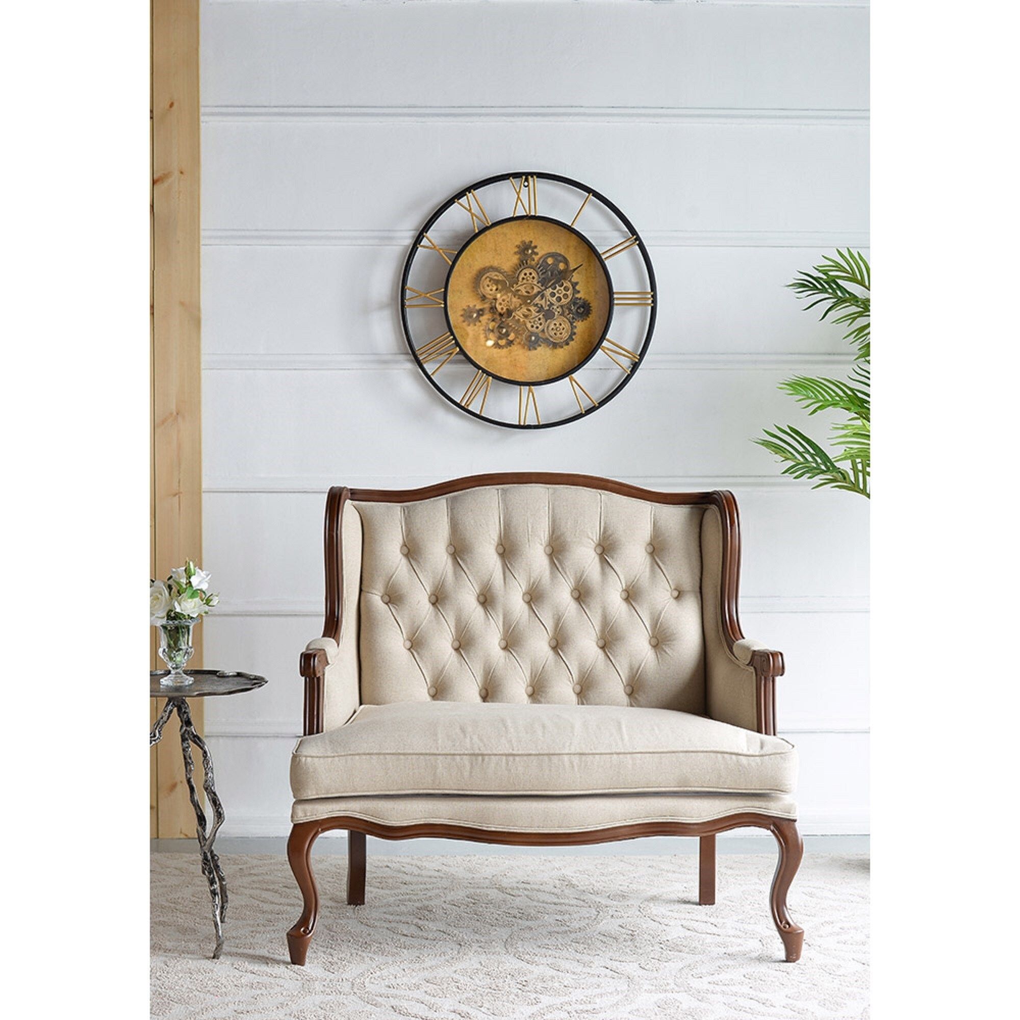 With its classic black and gold tones, modern cut-out Roman numerals along the rounded silhouette, and a collection of exposed gears that move as time passes, this decorative clock will infuse your home with a pop of steampunk allure. Perfect for your living room, dining room, or entryway, the sophisticated colorway ensures that it can complement a wide variety of interior styles. Offering great versatility, this clock can seamlessly complement a wide variety of interior styles, including modern, industrial, eclectic, and mid-century modern motifs.