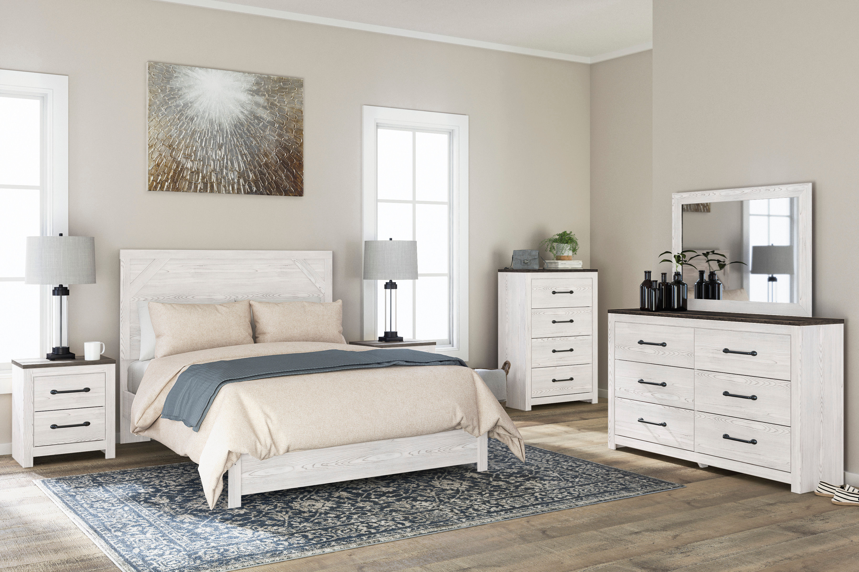 Cool, clean and casually modern. The Gerridan chest’s wispy whitewash and gray finish sets the tone for your calming sanctuary. Large linear pulls add dimension and authenticity. Four smooth-gliding drawers neatly accommodate your wardrobe needs.