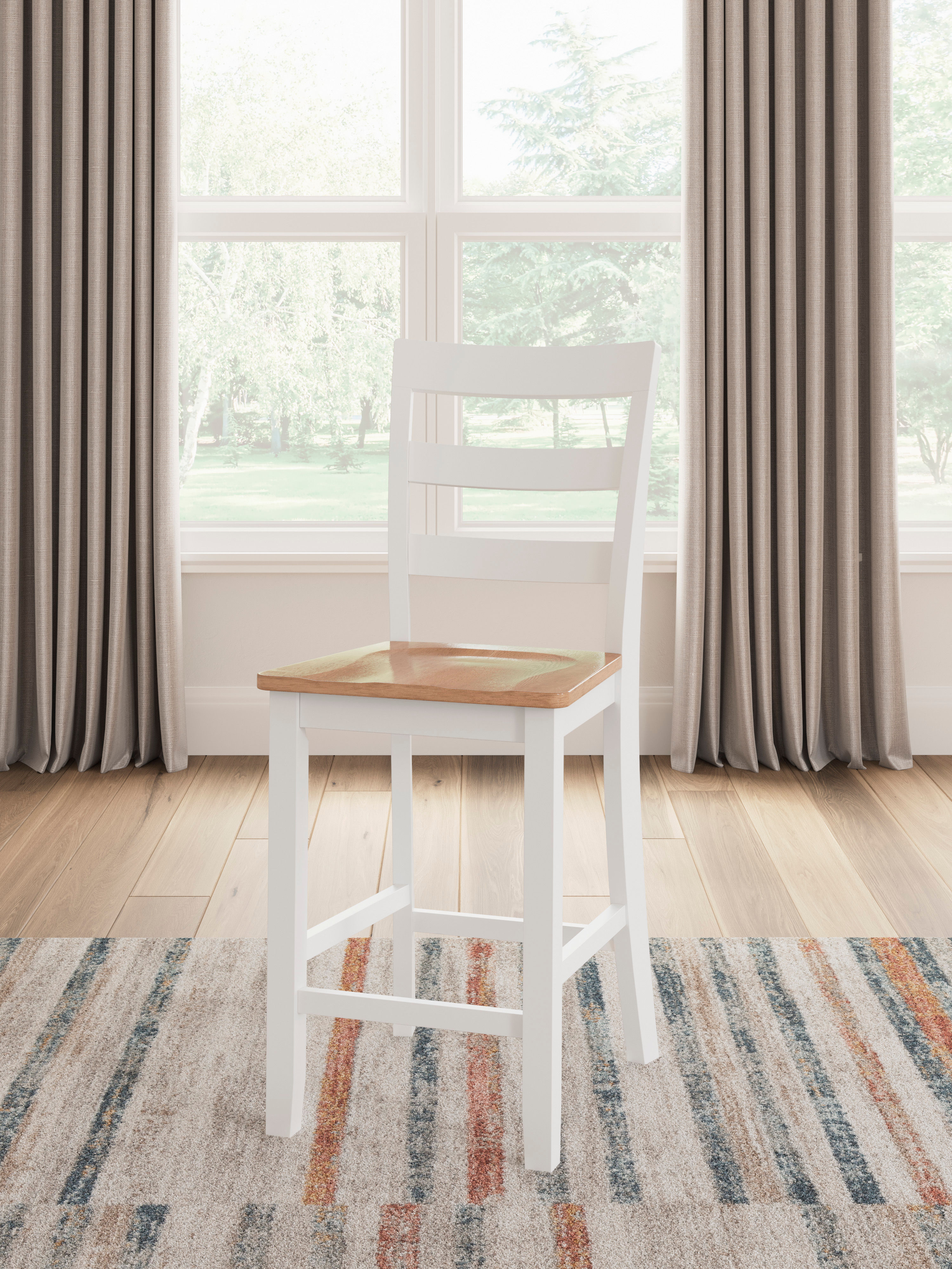 The Gesthaven counter height barstool features a two-tone finish and a contemporary style.