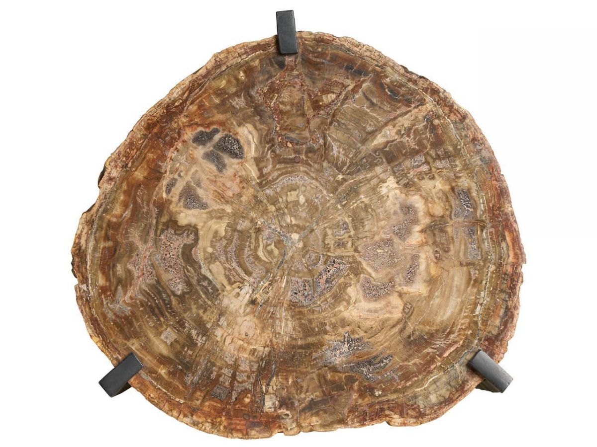 The Griffith Park Bunching Tables are a captivating duo that combines the beauty of natural stone with the strength of metal. The petrified wood stone tops, with their unique textures and colors, contrast dramatically with the sturdy cast iron bases. This dynamic pairing creates a striking visual statement, perfect for any living room or entryway.