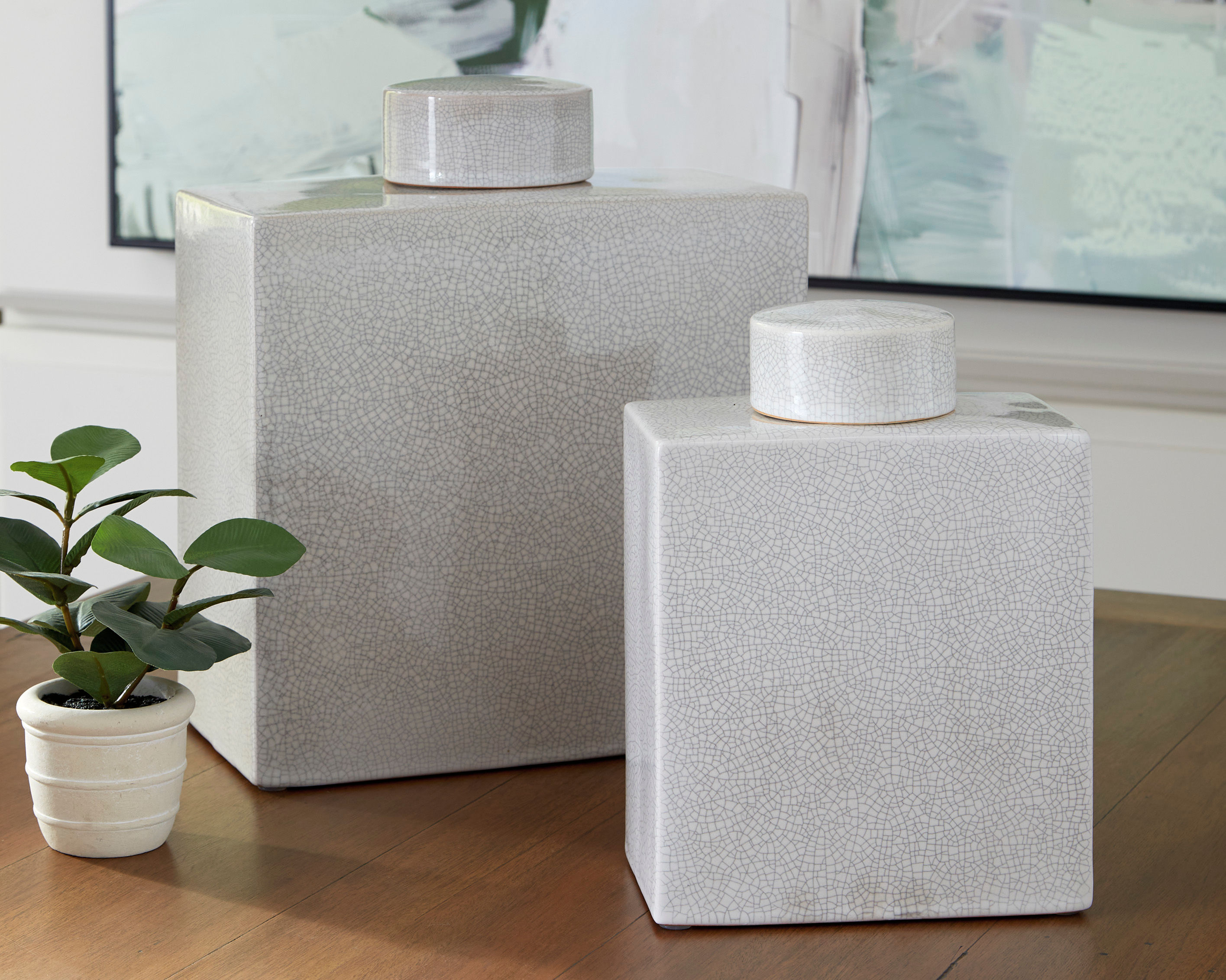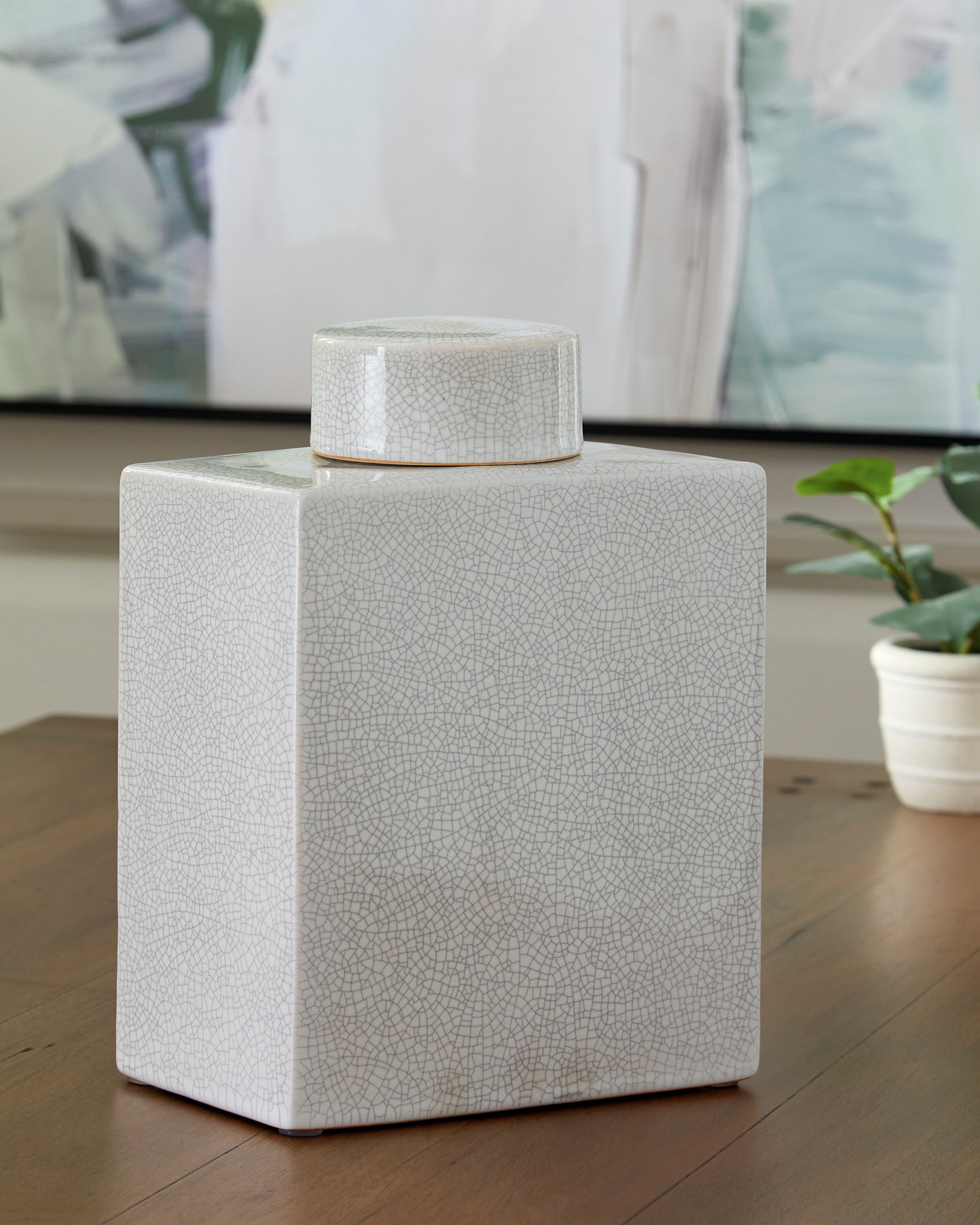 Show off your good taste with the off-white crackled glazed ceramic Haddworth jar. This jar is the epitome of sleek design and traditional style and will be the perfect accent piece for any style of interior. Due to the finishing process of this product, some variations may occur.