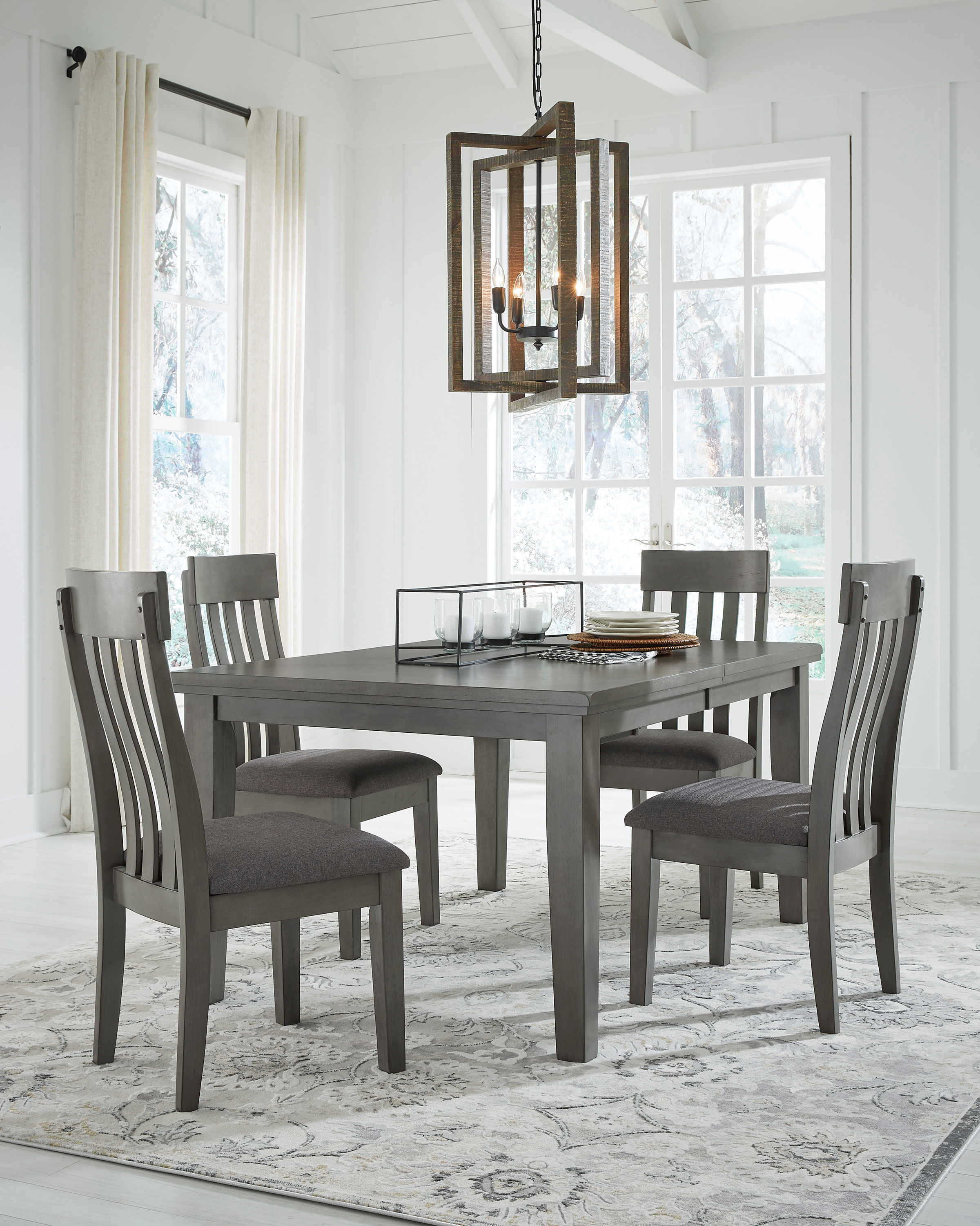 Cool and on-trend. The Hallanden dining package sports an antiqued gray finish for a contemporary-yet-casual feel. With this set, dining with friends and family has never been so stylish.