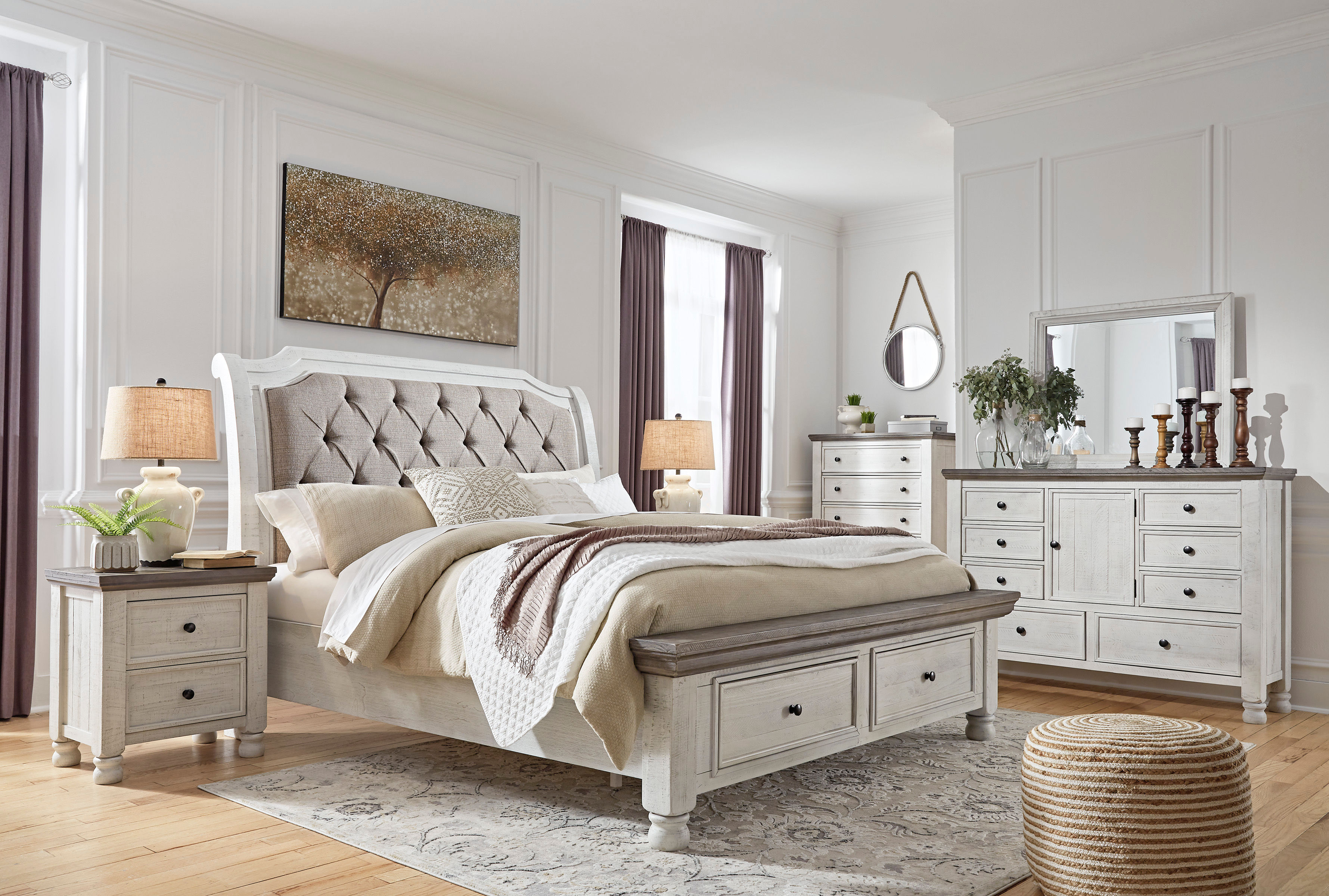 What a fresh interpretation of country classic style. Inspired by American farmhouse craftsmanship, but with an elevated sensibility, the Havalance queen sleigh bed with storage blends distinctive details—such as turned post accents, a tufted cushioned headboard and raised drawer fronts—for a substantial look that feels right at home. Those who appreciate rustic character should take note of the bed’s thick-profile crown moulding, beautified with a vintage two-tone finish. Two handy storage drawers flawlessly integrate traditional style with modern convenience.