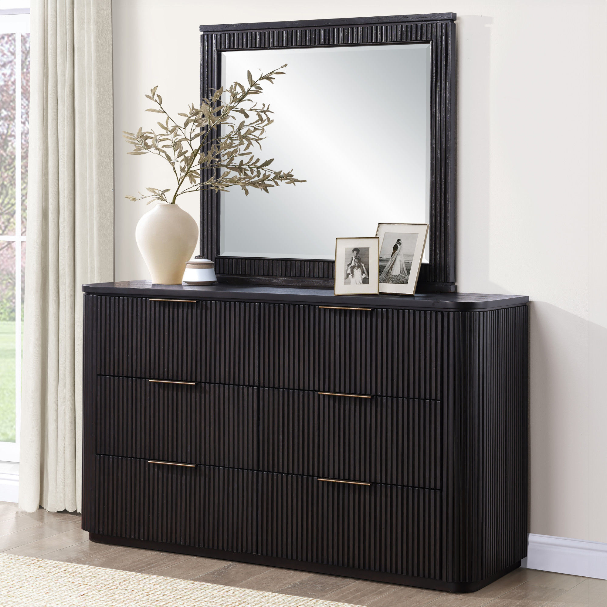 Add a touch of contemporary style with the Henry mirror and dresser set. Made with an espresso brown finish, the dark and neutral tone make it the perfect piece for any interior. The subtle striped look all around this 6-drawer dresser and mirror elevates the contemporary style to the next level.