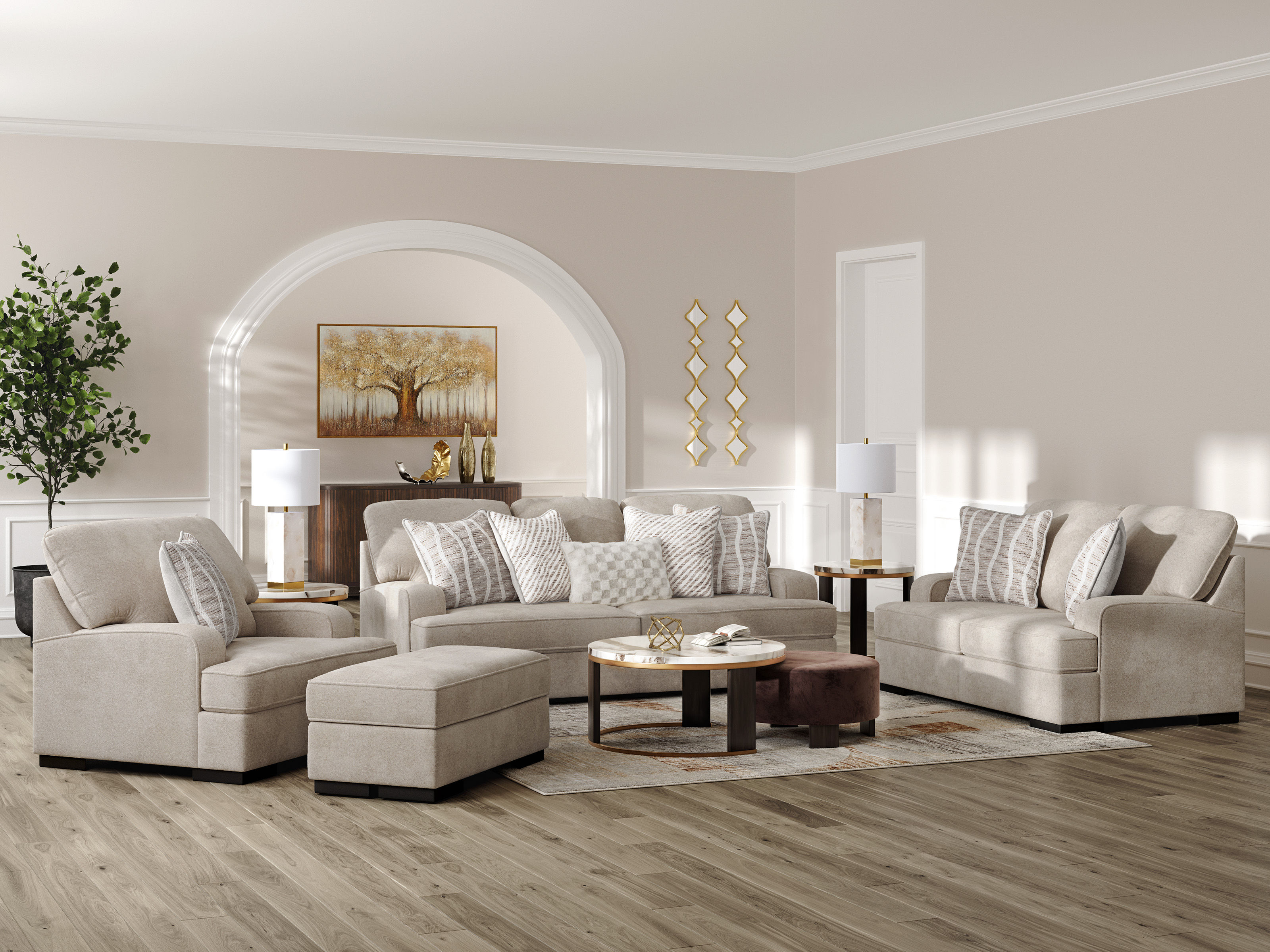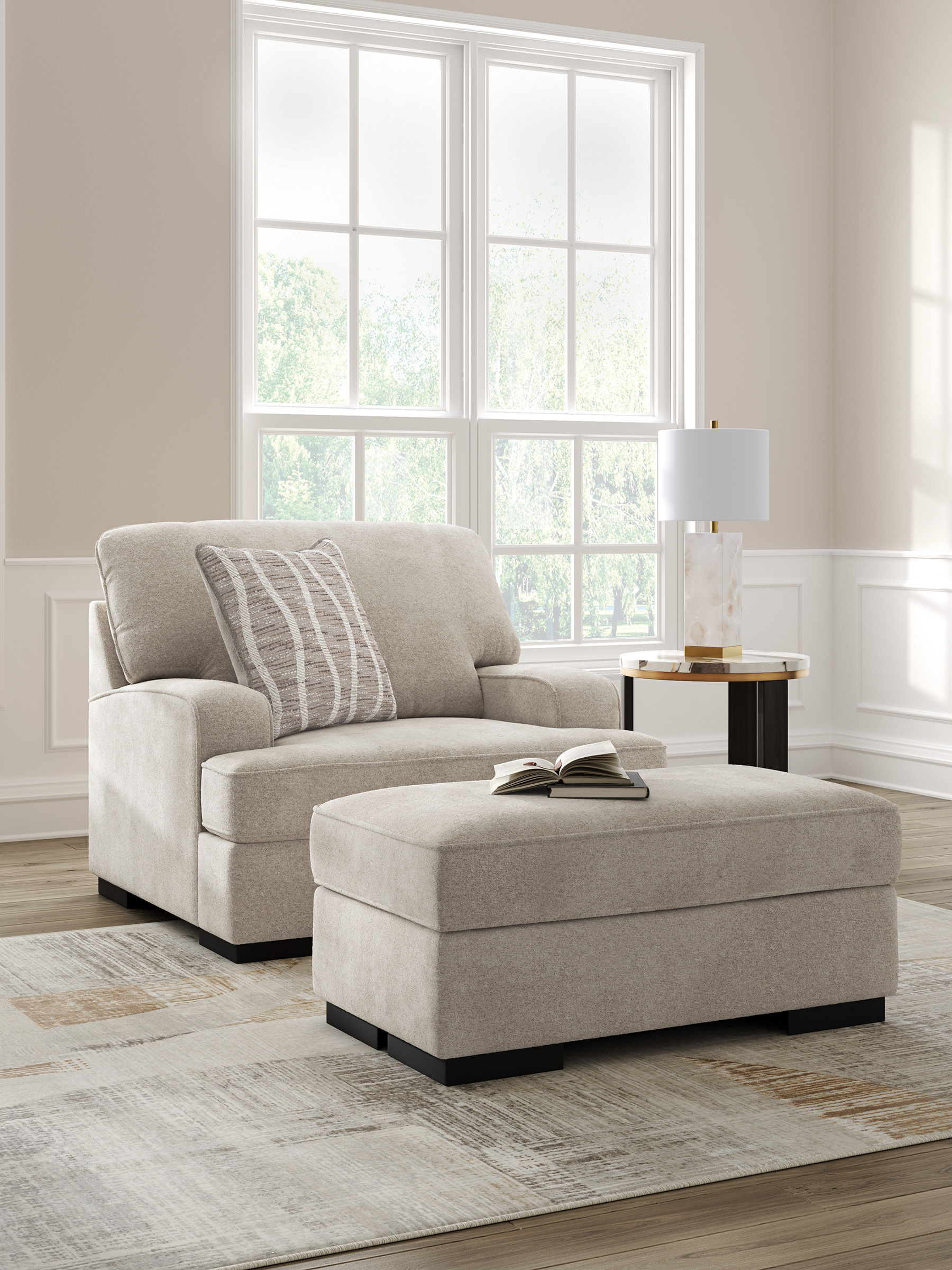 Modern comfort meets classic staying power in this ottoman. Kick back and stay cozy during morning lounging and movie nights with its luxuriously soft fabric. This ottoman's versatile upholstery adapts to your existing decor, so you can effortlessly update your style as trends change.