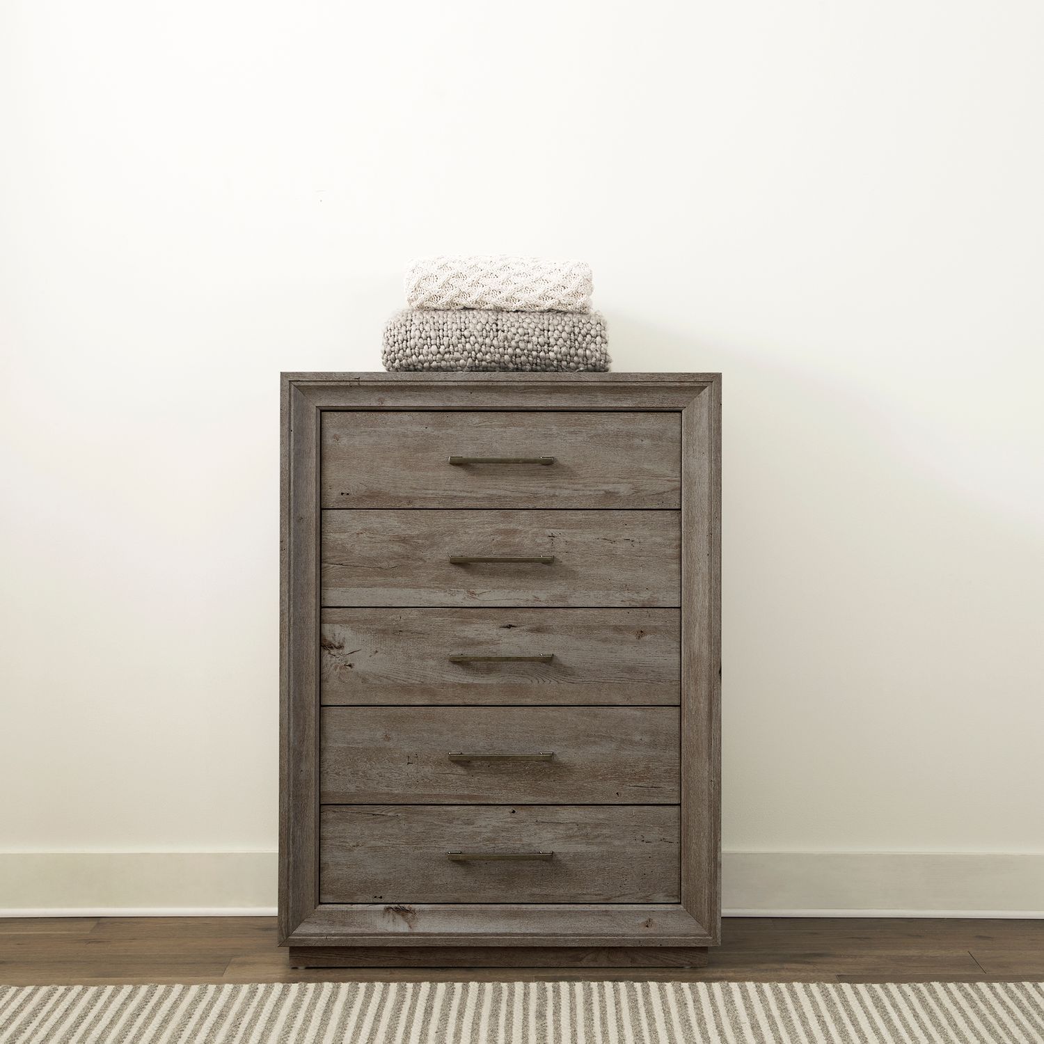 Experience casual contemporary style with the Horizons chest in a graystone finish.