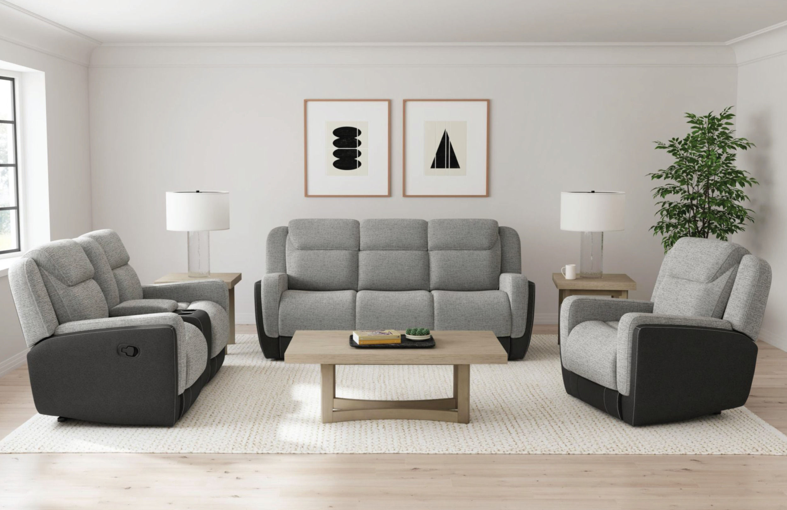 Transform your space with the Hornet reclining sofa, made with two-tone fabric upholstery and a sleek style.