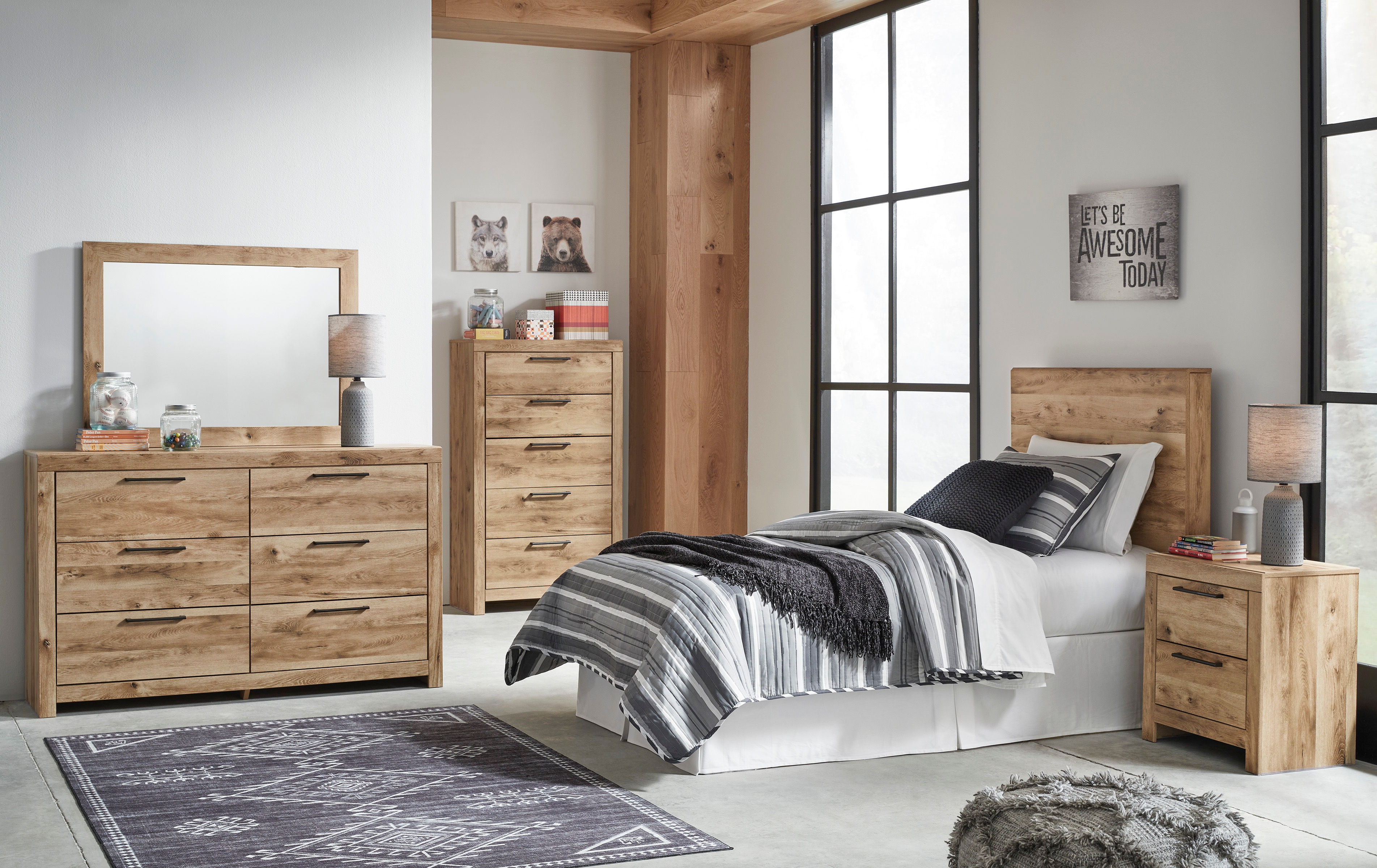 Inspired by natural beauty, refined to perfection. The Hyanna twin panel headboard brings cozy outdoor vibes to your bedroom with its warm and inviting golden rustic finish. Simple and streamlined, this piece adds a subtle touch of authentic style to your space.