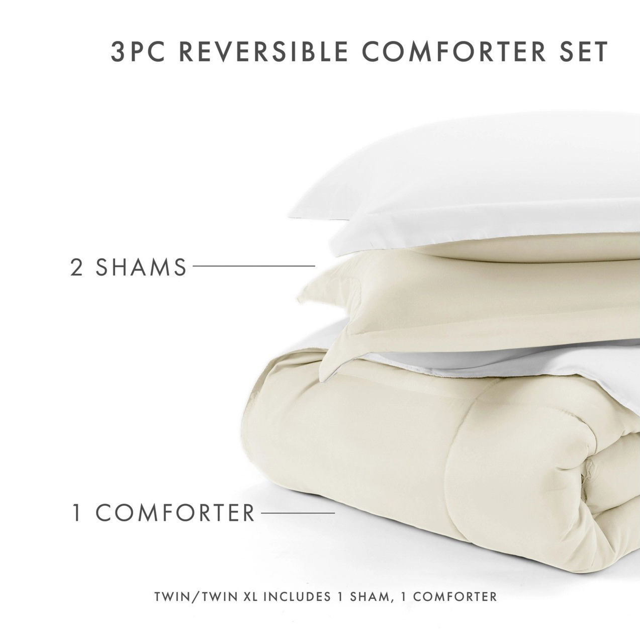 The reversible iEnjoy home twin comforter is hypoallergenic and has cozy comfort.