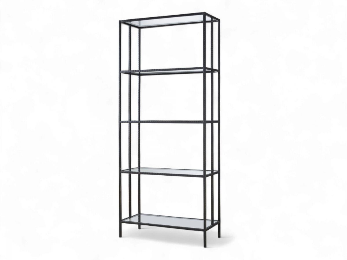 The Industrial Etagere offers a plethora of open-air storage space while simultaneously enriching spaces with its glass and metal material combination.