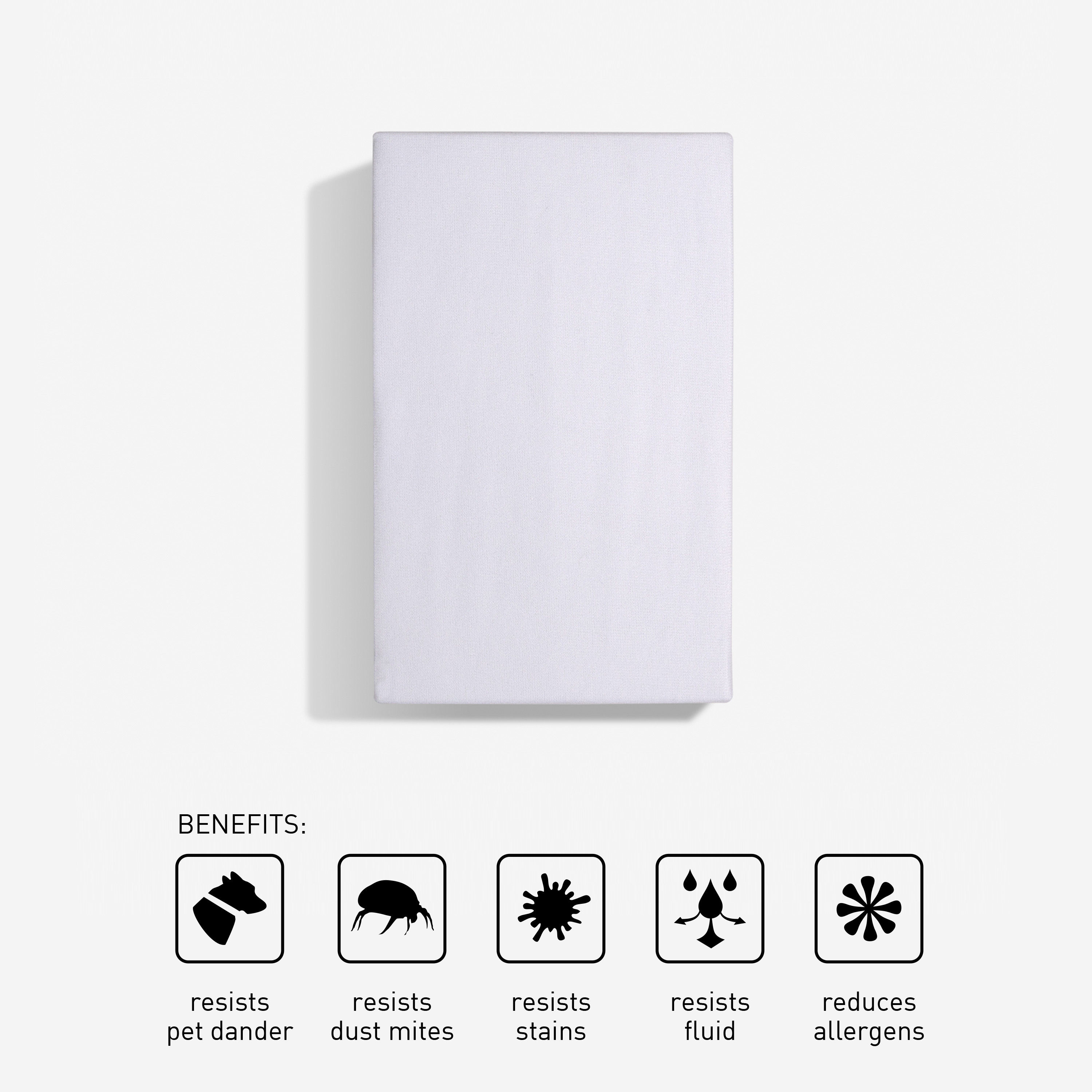 • Blocks pet dander and dust mites; resists stains and fluids; reduces allergens