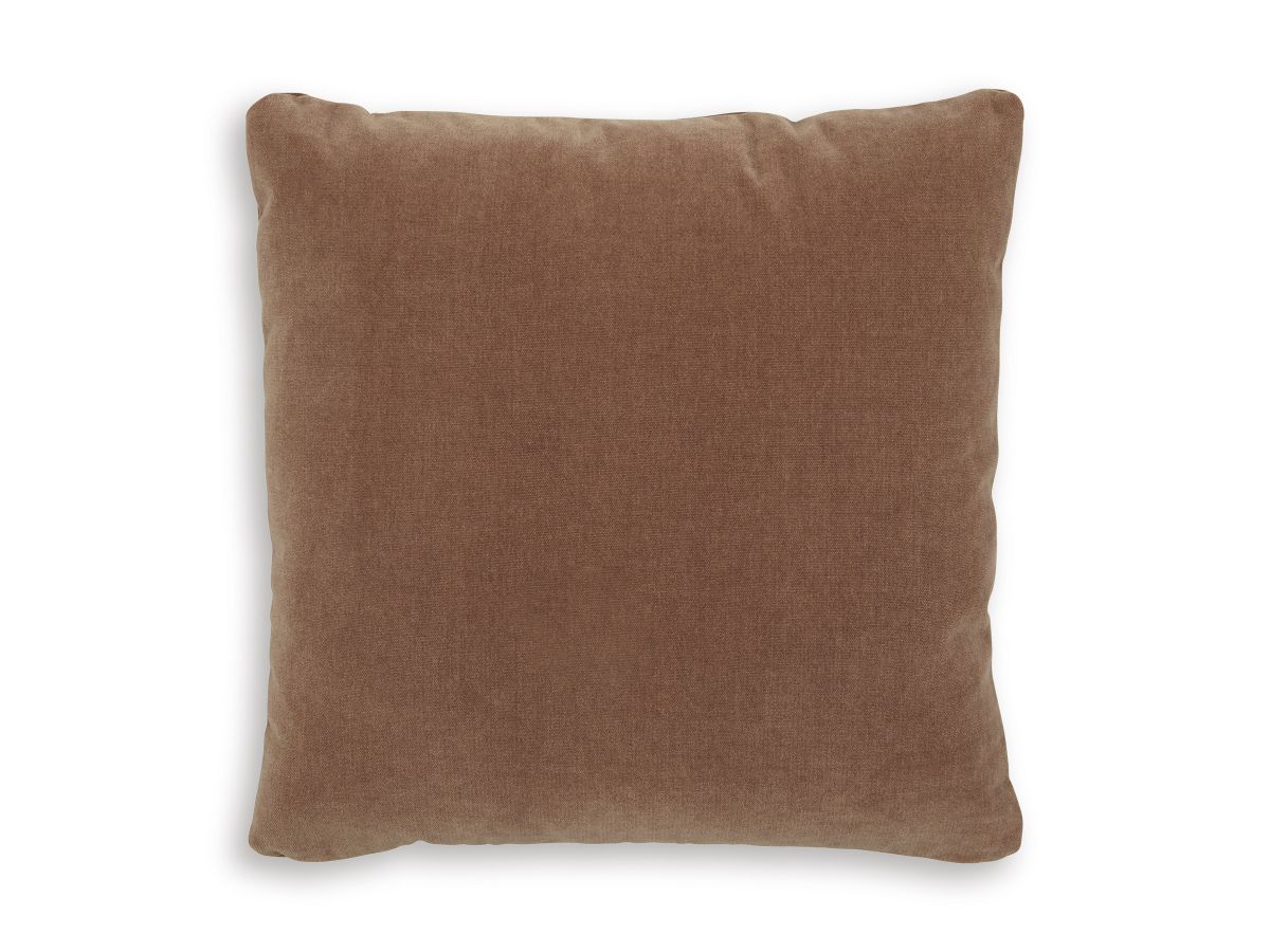 The casual and classic design of the Jaxkins accent pillow has a velvety sienna cover.