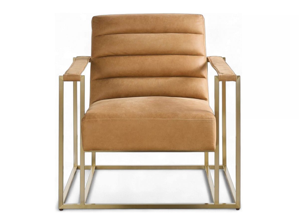 Experience elegant and modern style with the Jensen accent chair in sandstone leather upholstery.