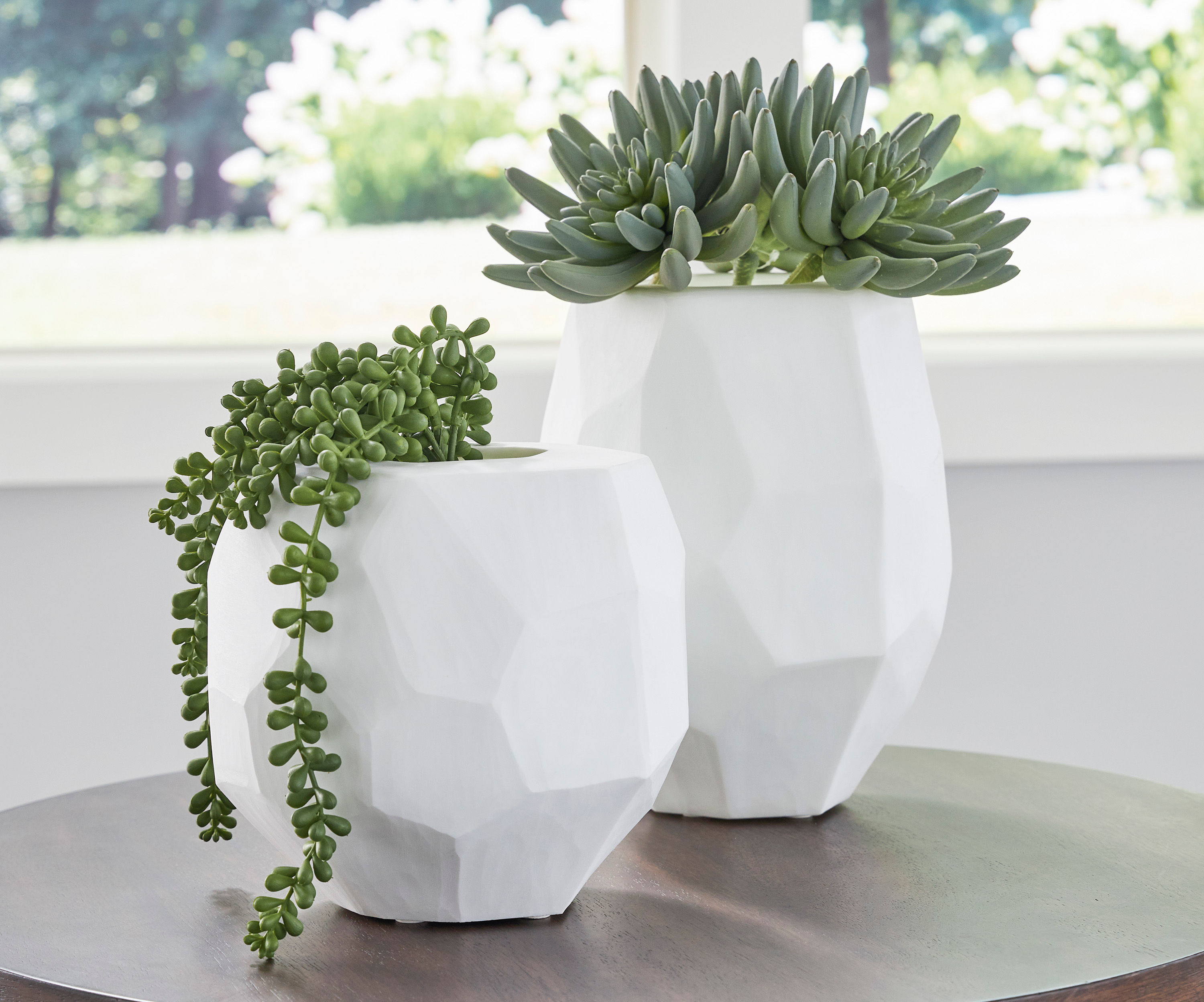 Equal parts elegant and organic, the Karenton vase brings ethereal beauty to your tabletop. Its white finish seamlessly harmonizes with existing accents. Meticulous craftsmanship creates the unique, faceted look of the hand-carved surface and makes each piece one of a kind.