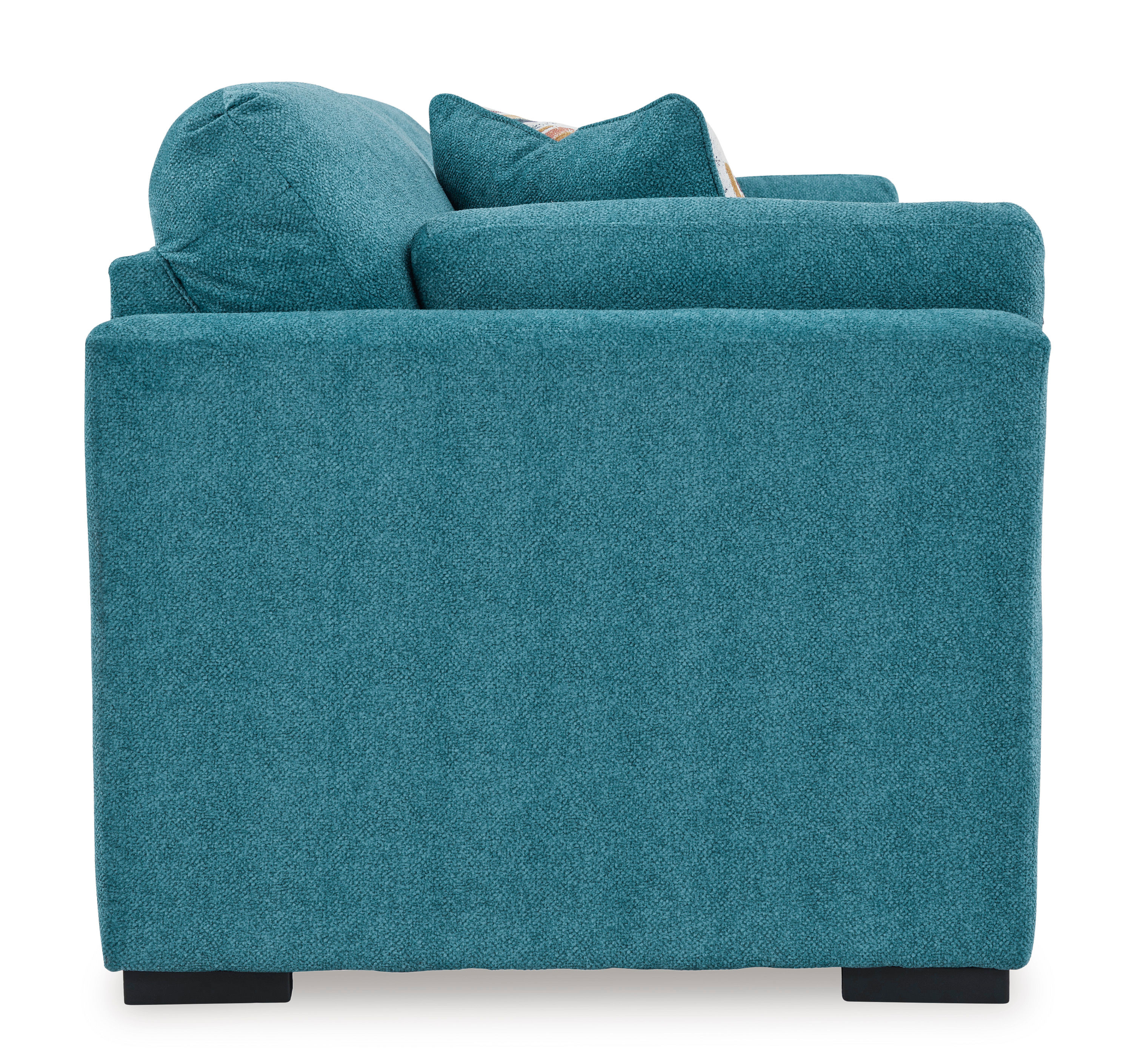 Add a pop of color to your living area with the Keerwick sofa in teal fabric upholstery.