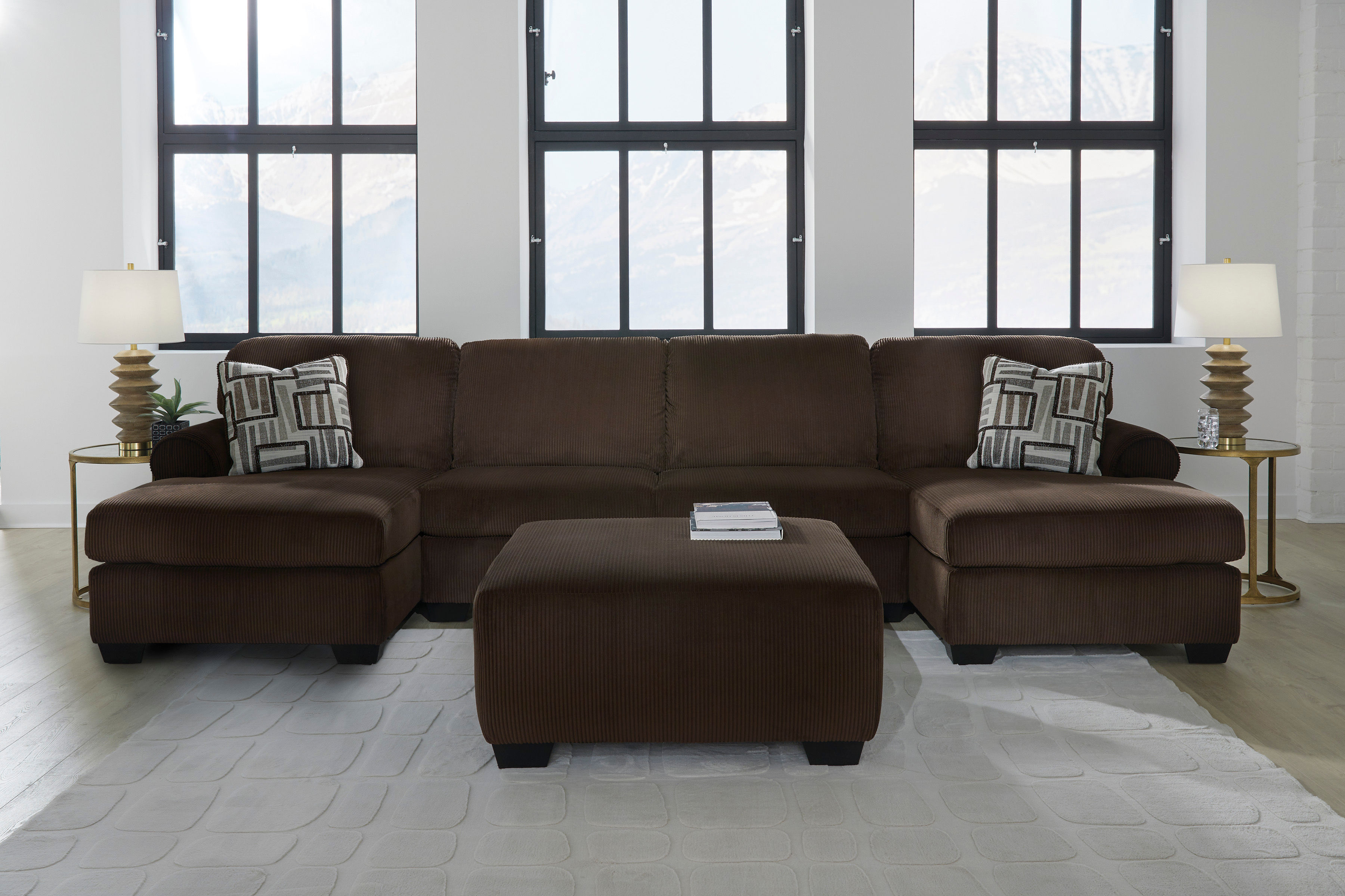 Cozy, casual comfort—made with everyday style in mind. This oversized accent ottoman is a reflection of your transitional tastes. Its soft-to-the-touch fabric, in a versatile warm chocolate brown, is detailed with a subtle corded design for added flair. Offering extra space for you to stretch out, it’s a welcome companion for the matching sectional (sold separately).
