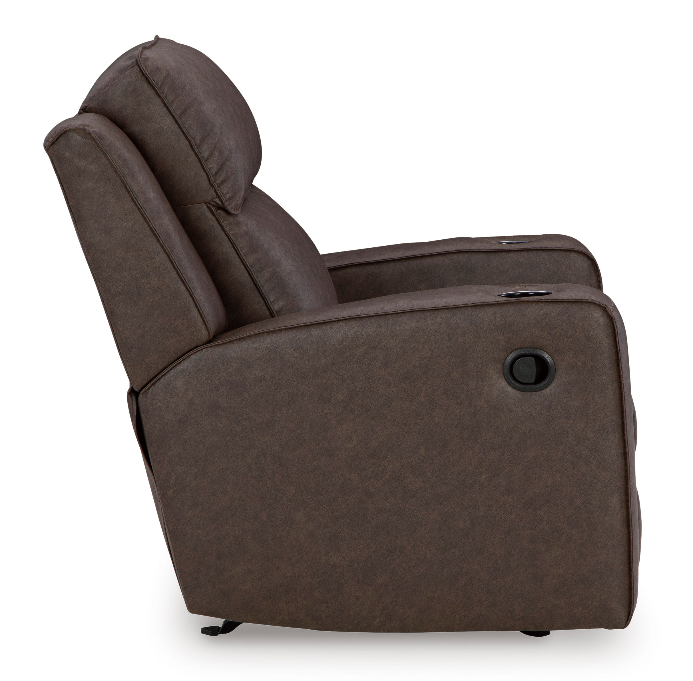 Indulge in comfort and contemporary design with the Lavenhorne rocker recliner in brown.