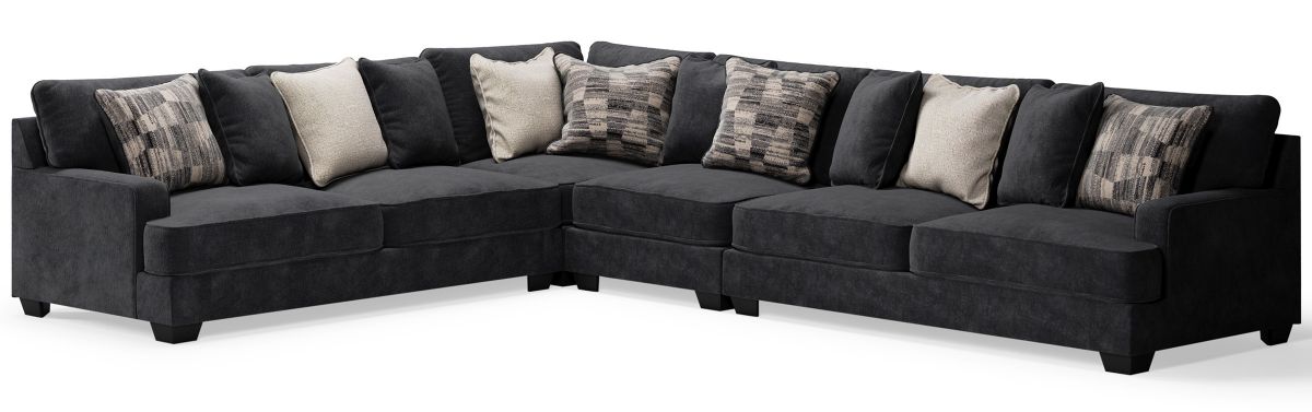 A match made in heaven, the Lavernett sectional marries a cool, contemporary look and a decadently soft, plush microfiber feel. This irresistibly comfortable union is love at first touch at the end of a long day, or anytime you're ready to get serious about relaxing. Say I do to big-time comfort and style flanked by neatly finessed track arms in a clean, straightforward design. A medley of pillows in cream, black and gray blends effortlessly with any setting.