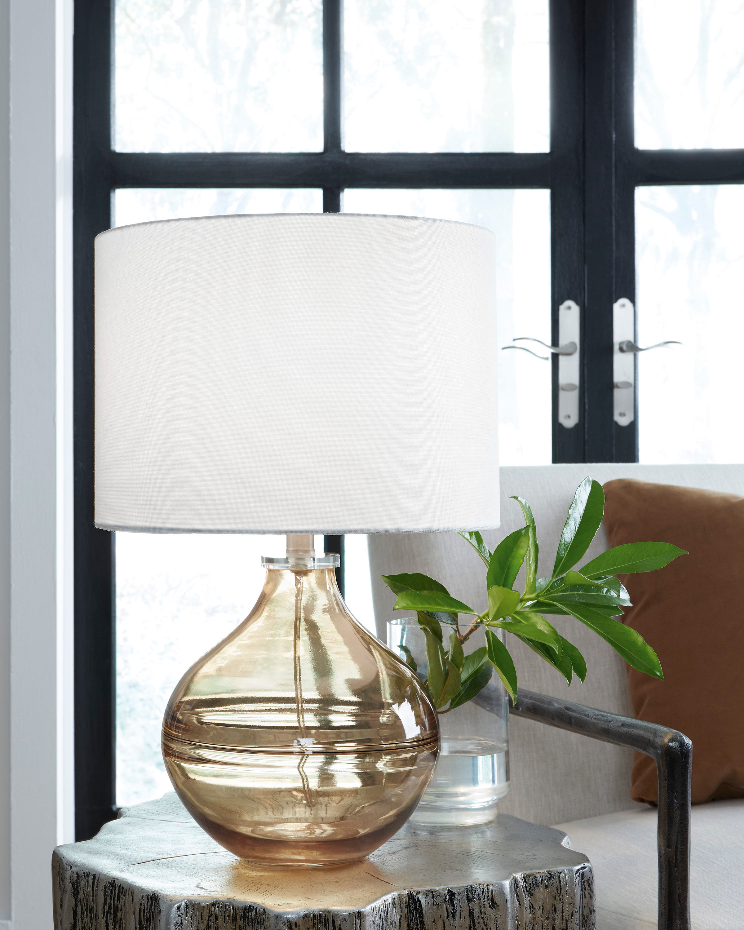 A chic design, the Lemmitt table lamp is made with transparent amber glass for elegant illumination.