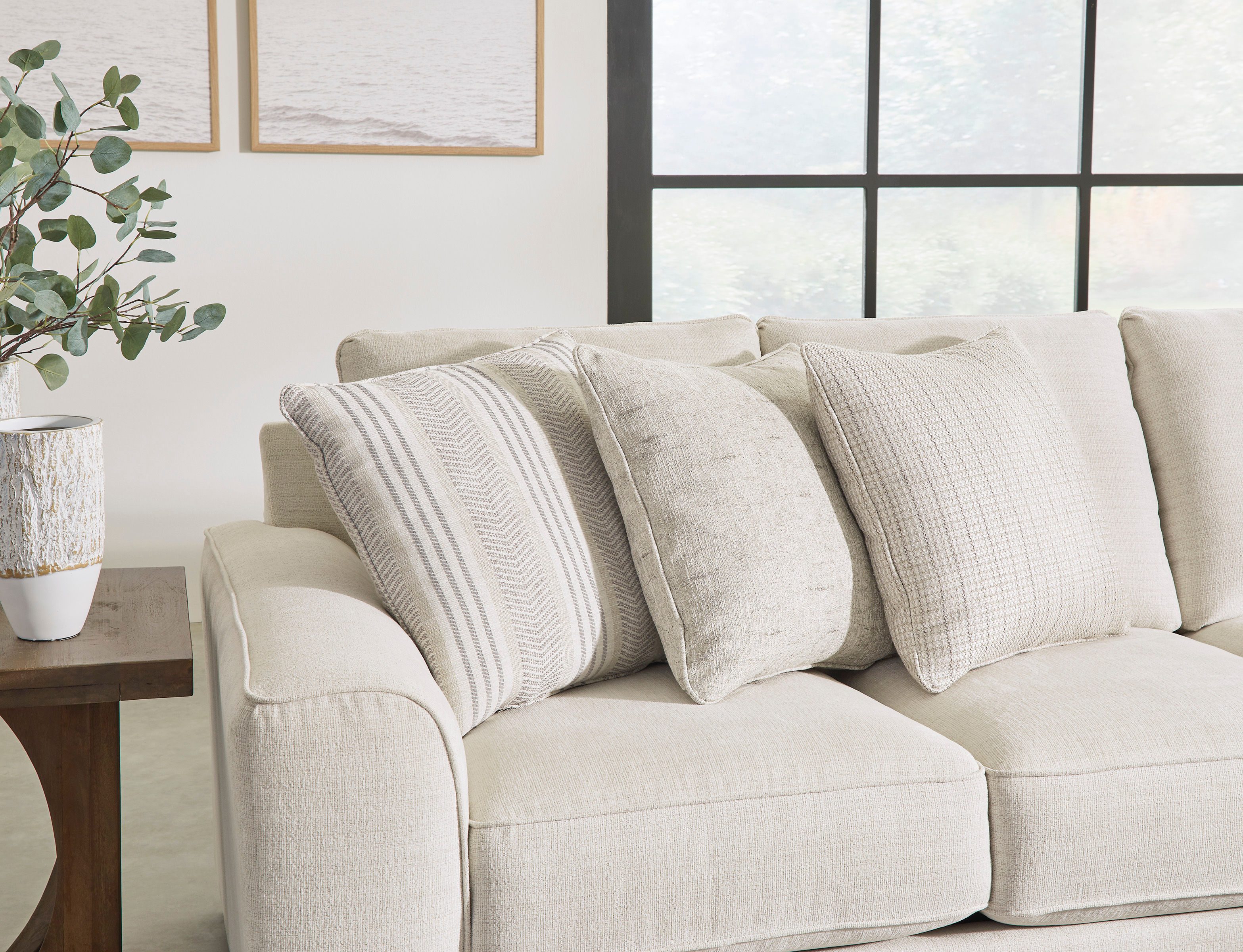 Delightfully modern. Exceptionally comfortable. If casually cool elegance is the look you’re going for, the Lerenza sectional with chaise pleases in striking style. Its deep, plush seating invites you to sink in and stay a while. Design details, like welted accents and eclectic decorative pillows, elevate this piece to an everyday favorite.