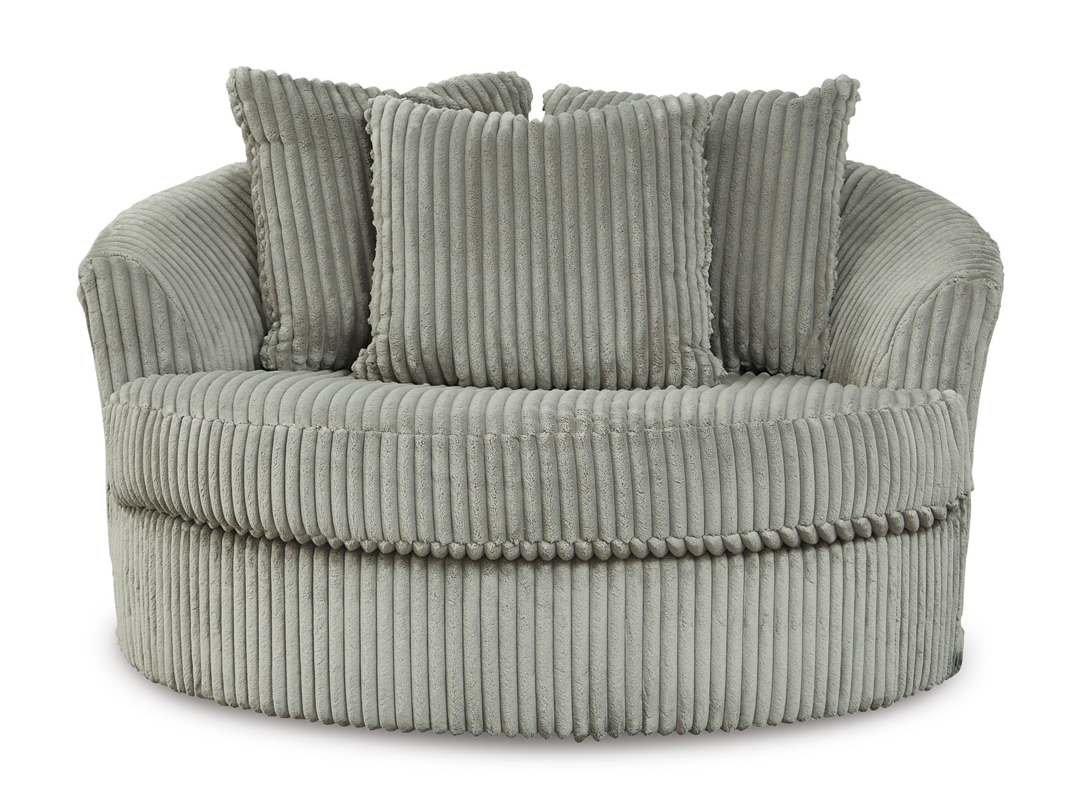 Plush and posh. Showcase your eye for on-trend texture with the statement-making cord upholstery of the Lindyn oversized swivel accent chair. Its stunningly soft fabric entices in a warm neutral hue, complementing contemporary color palettes. Sink into the spacious cushion and plan to stay a while—this cozy living room chair highlights your high-end approach to comfort and style.