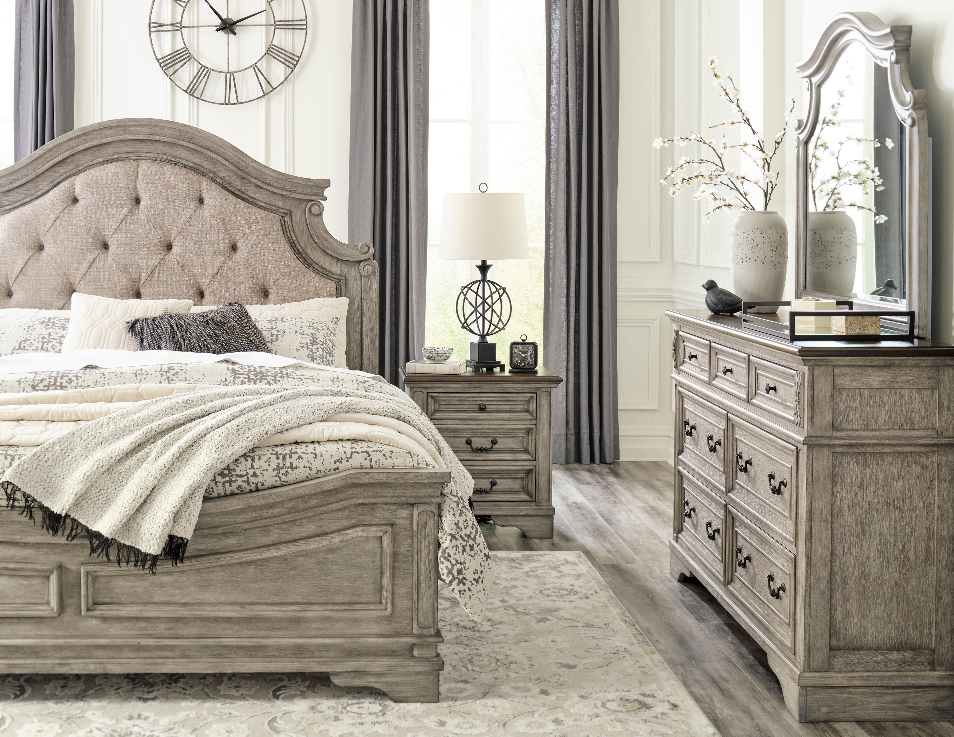 • Two-tone finish; antiqued gray body with a rich, deep walnut brown finish on top