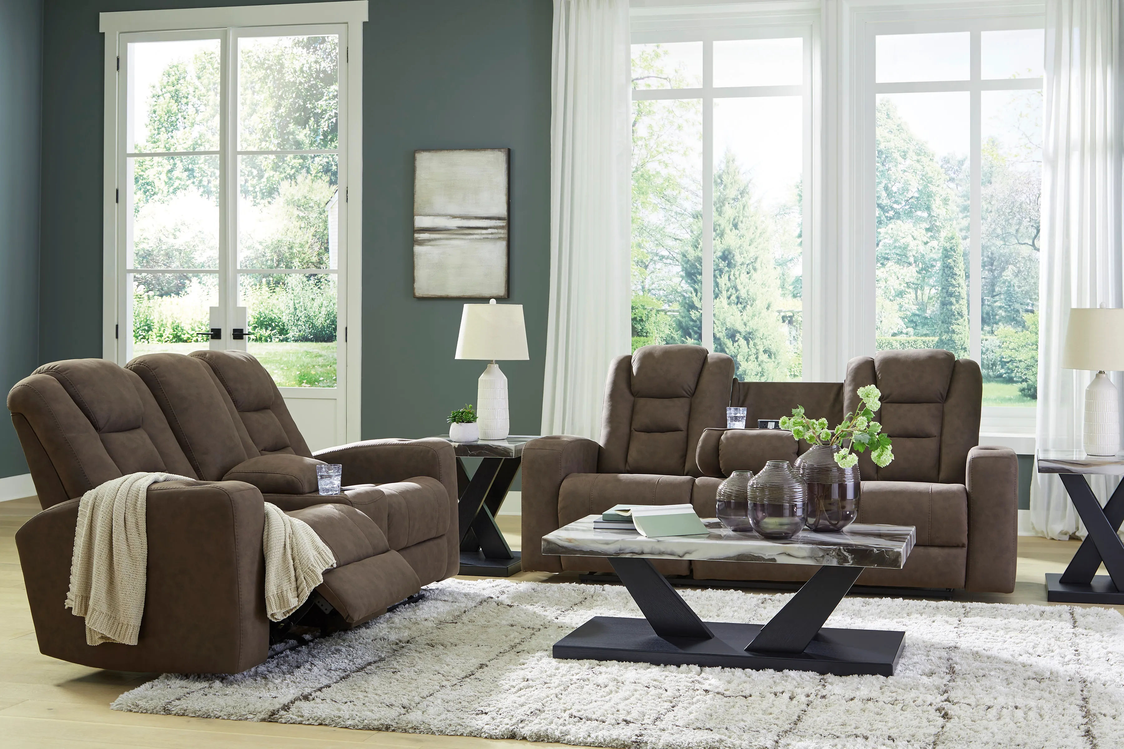 Comfort is up for grabs, and it’s all yours here. This reclining sofa with drop-down table delivers high style at a great value. Settle in and kick back with its easy pull tab reclining. Too cozy to get up? Cup holders and assorted charging options keep your go-to drinks and devices close, so you can stay in relaxation mode. And with faux leather upholstery in a rich brown, this piece complements contemporary living rooms with a refined yet welcoming vibe.
