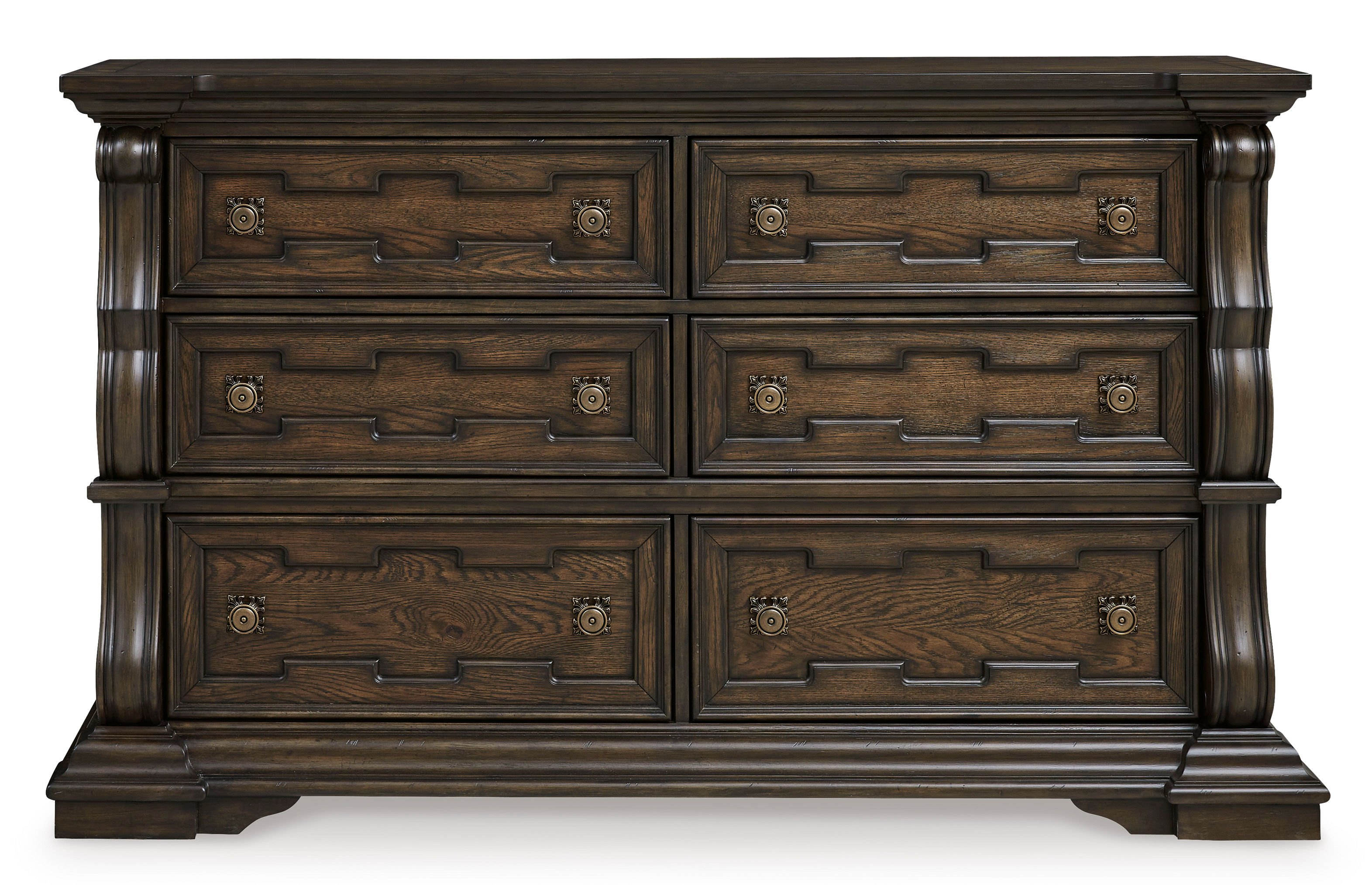 Practical storage meets timeless elegance with the Maylee dresser, made with a bold, ornate design.