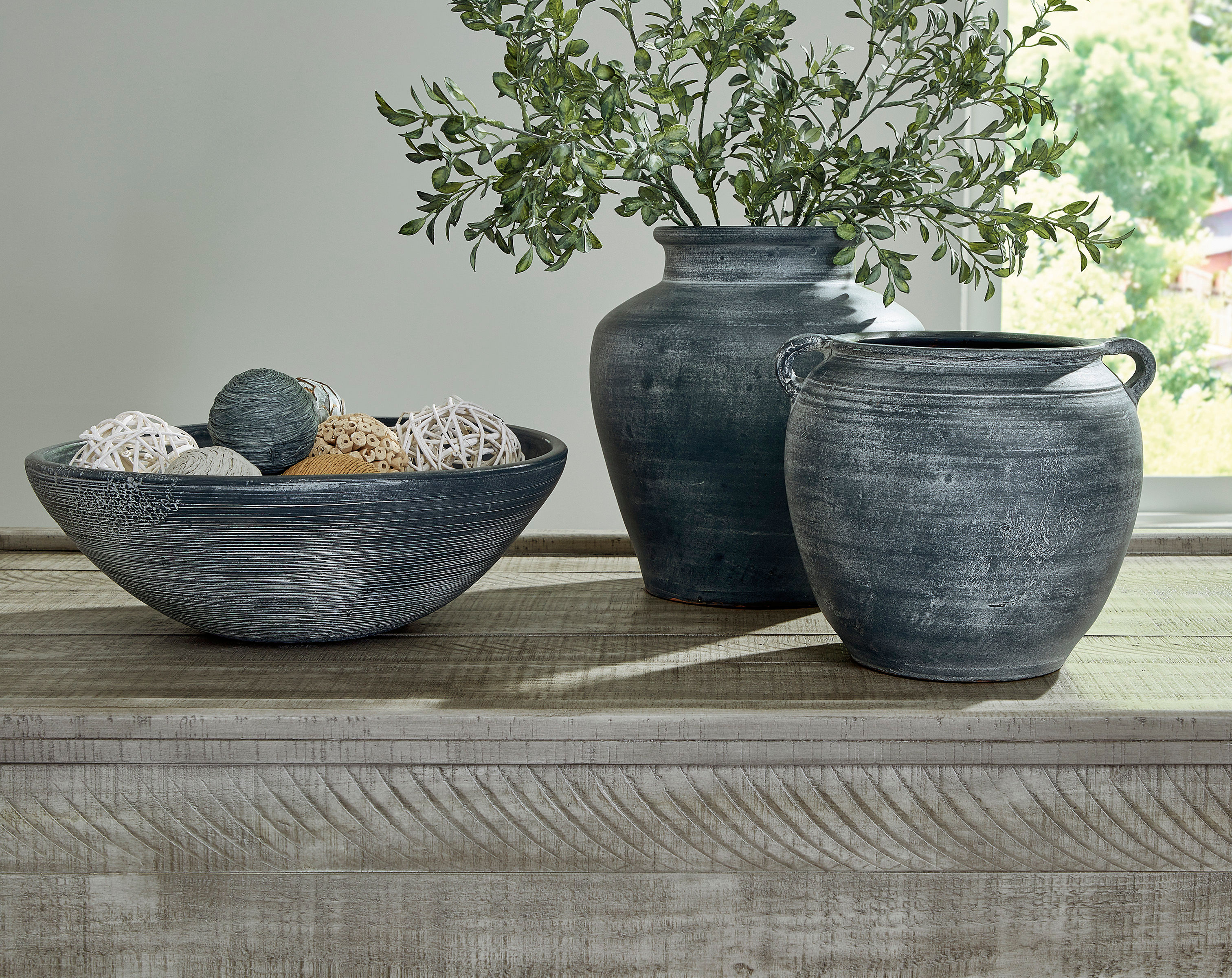 Understated in its beauty, the Meadie vase offers a traditional feel courtesy of its terra cotta construction. The antiqued look is brought into the present with a distressed blue hue. It's an effortless way to elevate a centerpiece, bookshelf or mantle. Add faux florals or greenery for additional character.