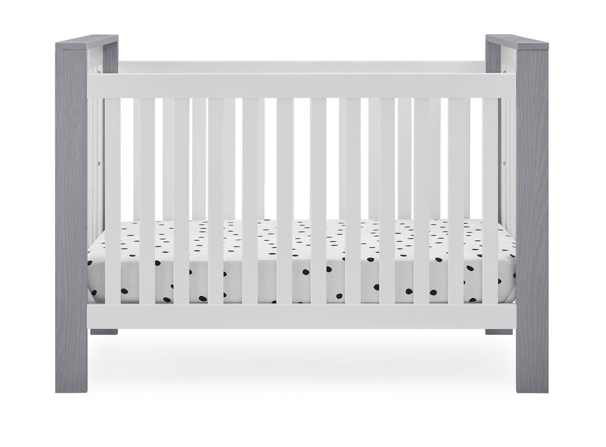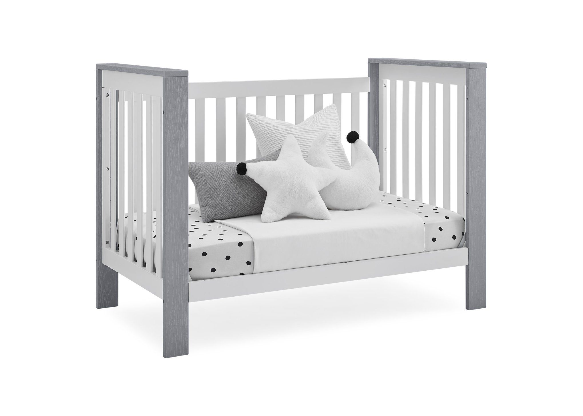 The Miles 4-in-1 Convertible Baby Crib by Delta Children marries modern design and rustic charm. The contemporary shape of this crib is grounded by slab legs and is framed in contrasting trim that is slightly textured for an earthy touch. Built to stylishly accommodate each stage in your child's life, the Miles 4-in-1 Crib features three convenient mattress heights that can be lowered as your baby grows—and when your child is ready to independently get in and out of bed, just add the conversion rail (#0094) to transform this sleek crib into a toddler bed, daybed or sofa!
