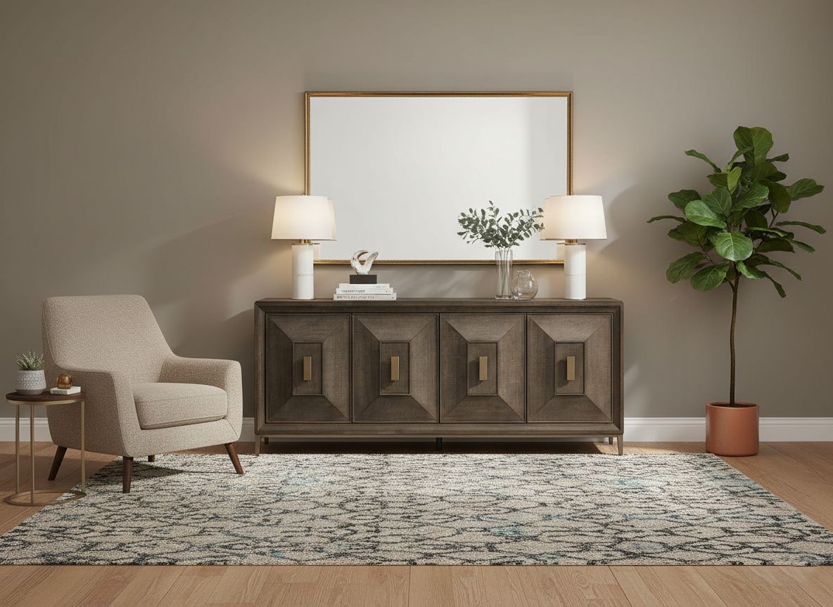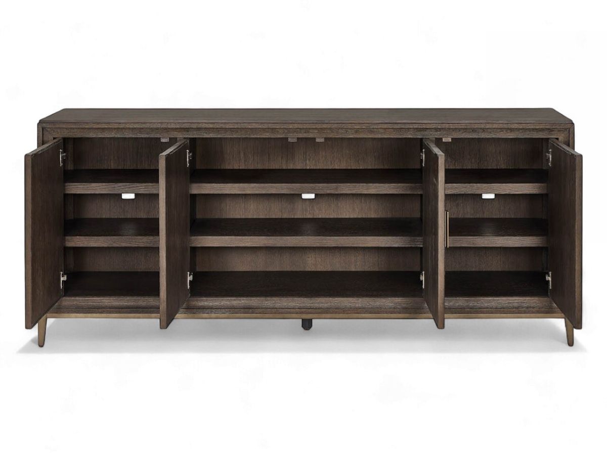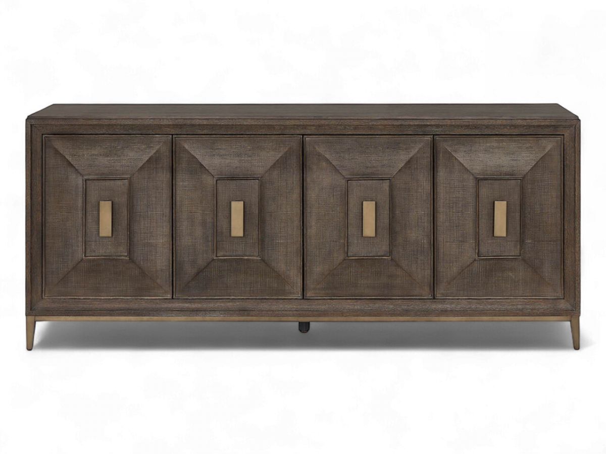 The striking geometric door fronts on the Montclair credenza features sophistication and practicality.