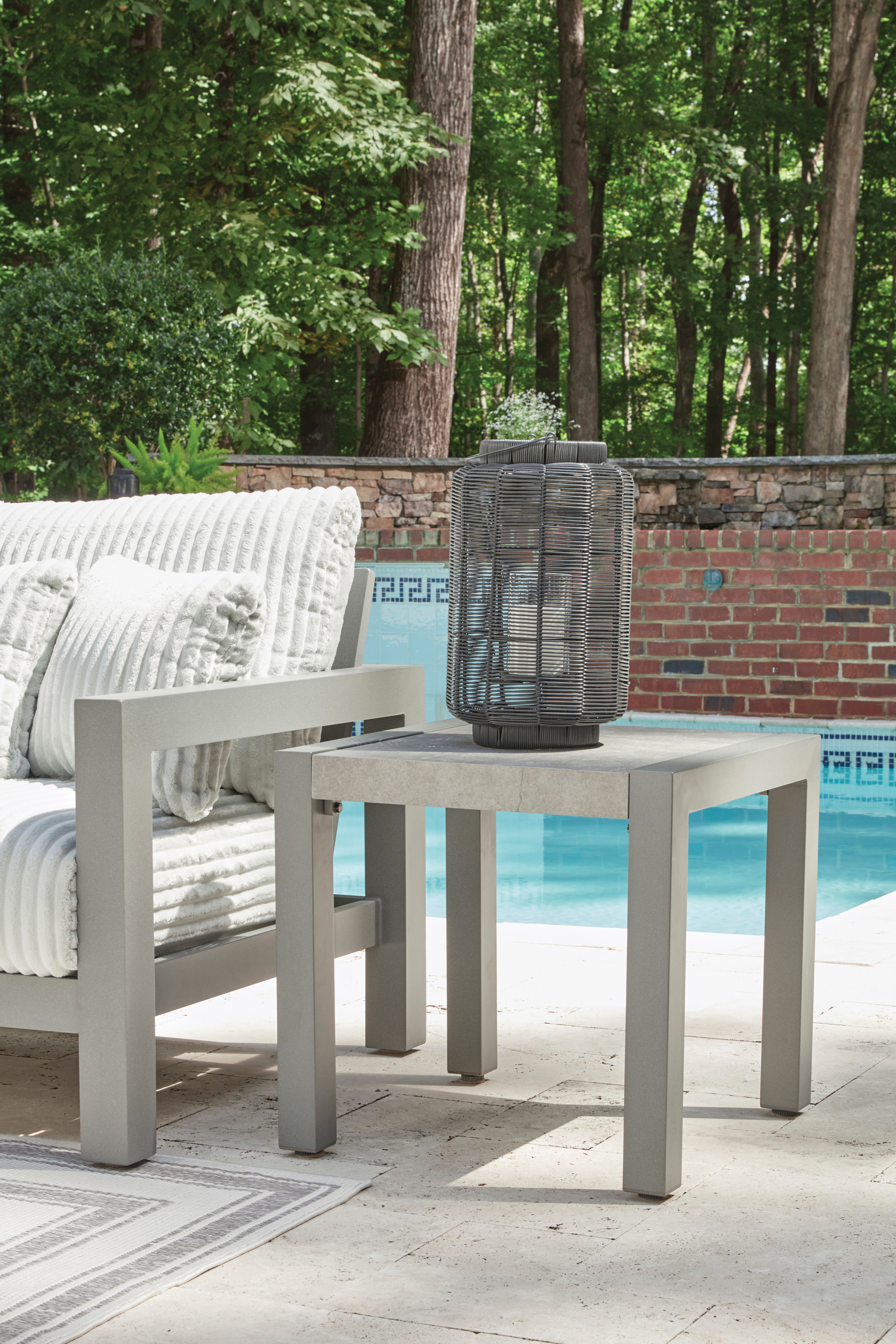 Indulge in luxe outside living without sacrificing longevity. This outdoor end table combines natural beauty with a sleek aluminum frame. Soak up the sun poolside or on the porch—it’s the perfect perch for your drink or latest read. And with a chic gray stone tabletop, style and durability go hand in hand.